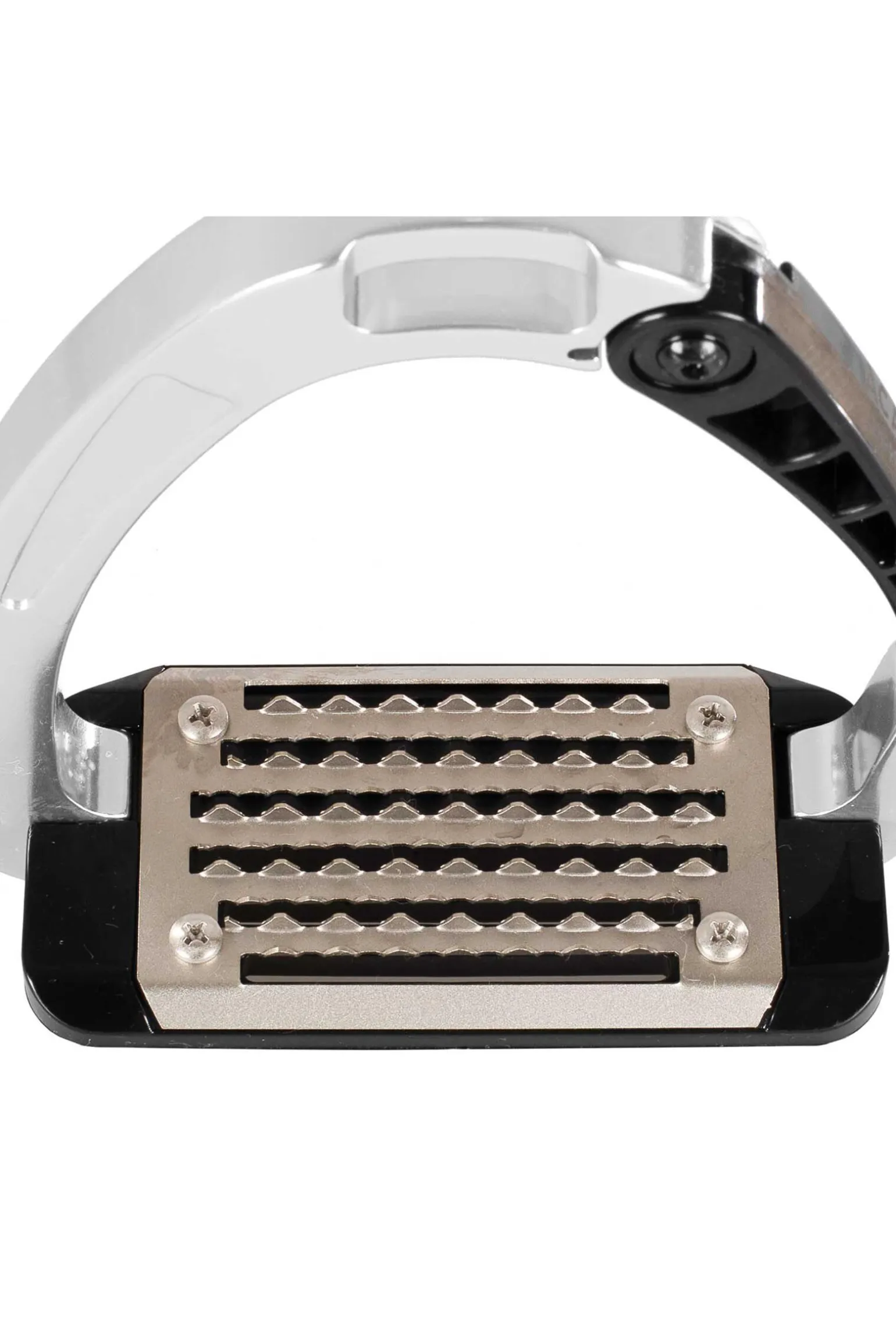 - Plassert mellom den nedre delen av den svingbare stigbøylearmen og fotstøtteplaten/tråflaten