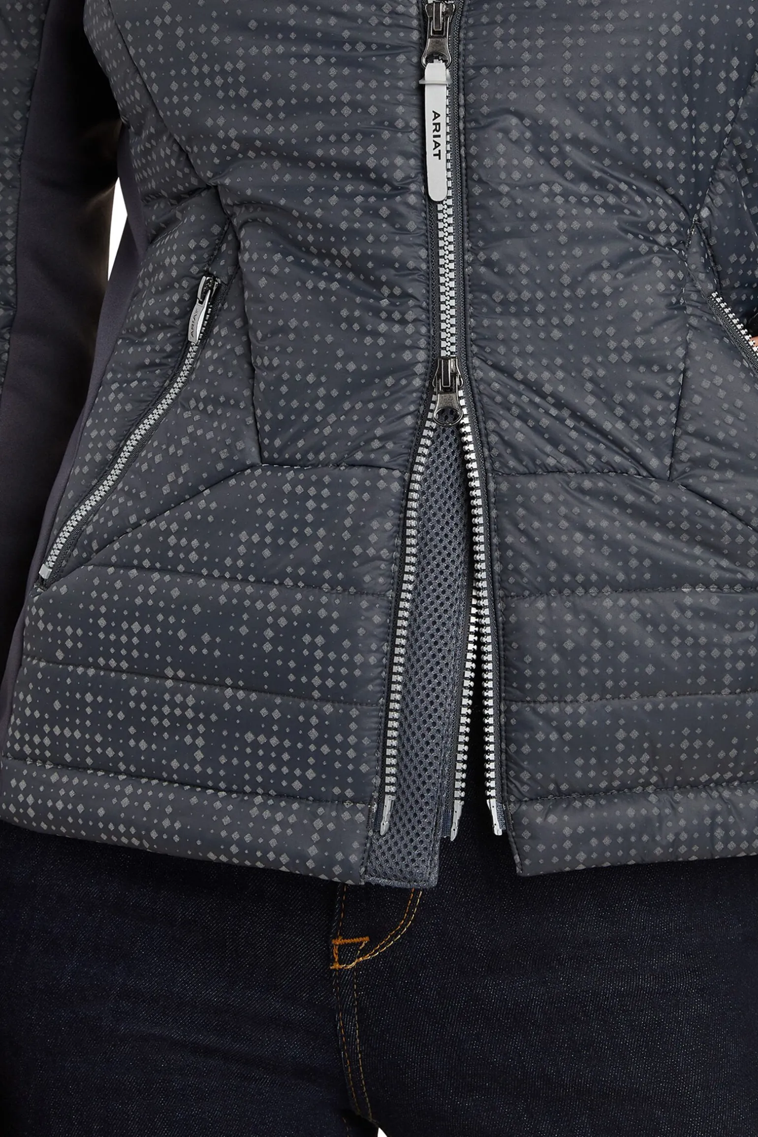 Ta tak i elementene i komforten til denne vind- og vannavstøtende jakken. Stretchy fleece og et supermykt fôr omslutter kroppen din for varme mens jakkens unike doble glidelås øker pusteevnen. Denne jakken, en del av Ariats Lumina-kolleksjon av reflekterende klær, har et reflekterende skall for en elegant og sporty look.