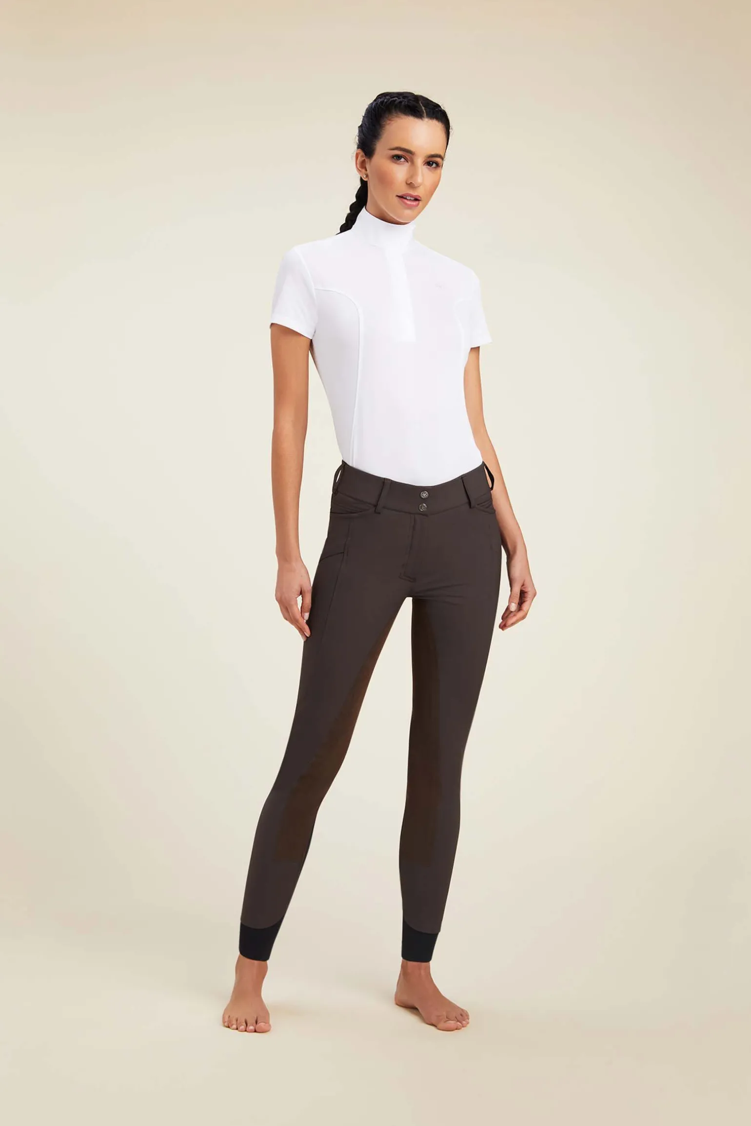 Denne hverdagsridebuksen er laget av førsteklasses ytelsesstoff med fireveis stretch for mobilitet, ultraslitesterk dobbelvevet twill og en infusjon av kompresjonsteknologi som gir eksepsjonell støtte fra legg til midje.Et helforsterket sete i uekte semsket skinn tar seg bra ut på disse klassiske, tradisjonelle ridebuksene.