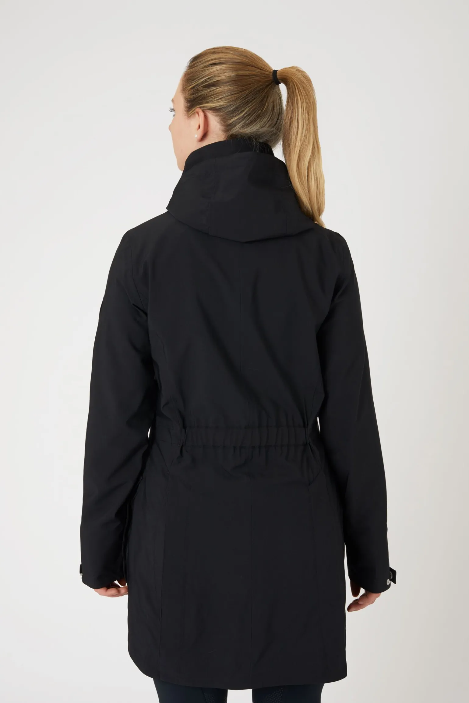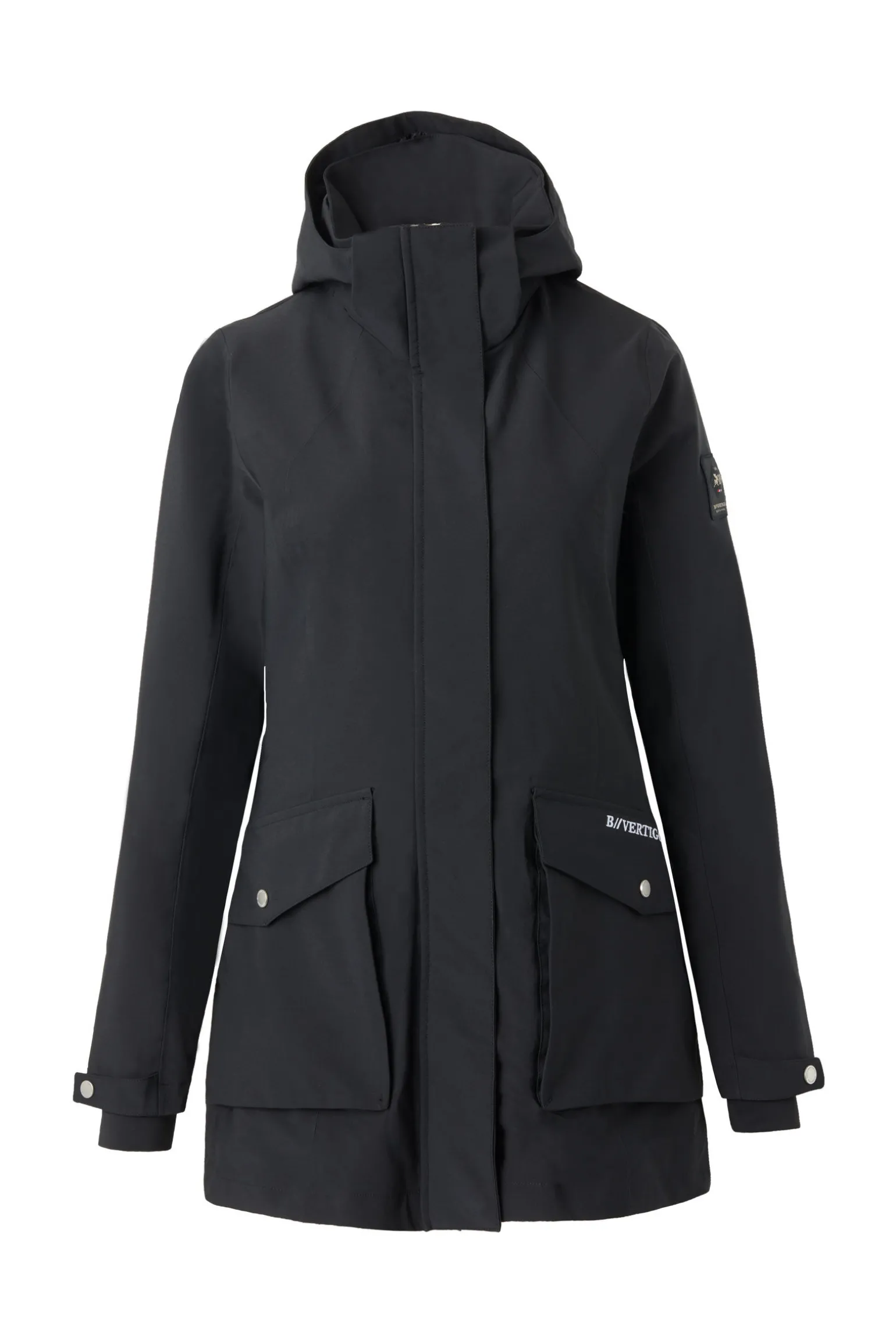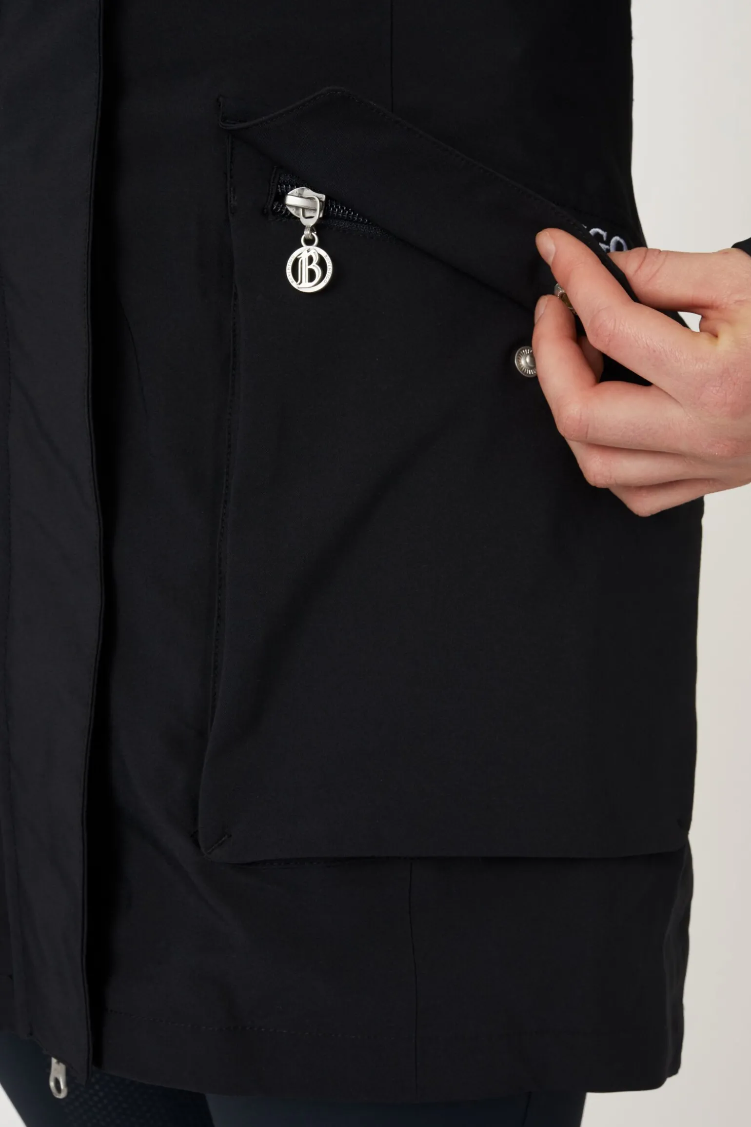 B Vertigo Caroline vanntett jakke beskytter deg perfekt mot regn og vind.Den lange passformen gir varme uten at den forhindrer bevegelsene dine eller ødelegger salen, takket være to splitter bak med magnetiske knapper.Store glidelåslommer med trykknapper holder eiendelene dine trygge.Hetten kan enkelt tas av med en glidelås.Elastiske mansjetter på innsiden av ermene er ekstra komfortable.Elastisk drasnor i livet gir en flatterende form.Bruk den med vår B Vertigo Caroline fleecevest for ekstra varme.