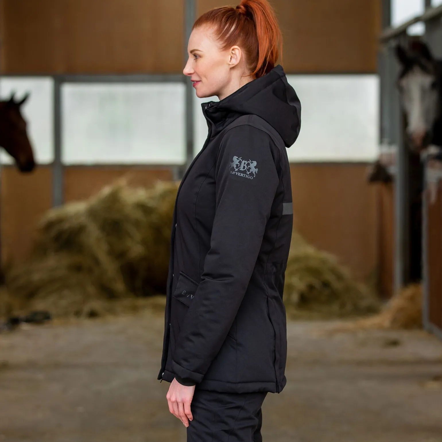 Forbered deg på kulden som aldri før. Ikke bare ser jakken Dana nydelig ut, den gir behagelig varme og er superkomfortabel å bruke. Laget av stoff som er elastisk, pustende, varmt og vanntett – alt du trenger for de kommende vintermånedene. Innsiden er justerbar i livet for å fremheve den feminine formen. Toveisglidelåsen og magnetisk knapp bak kan åpnes, noe som gjør at rytteren kan sitte komfortabelt i salen. Den magnetiske knappen er super ettersom den på ingen måte skraper eller ødelegger salen. Lommer med glidelåser holder på plass telefon, nøkler og andre eiendeler når du rir. De reflekterende detaljene på ryggen er utmerket når du er ute i mørket, da de holder deg synlig for passerende kjøretøy.