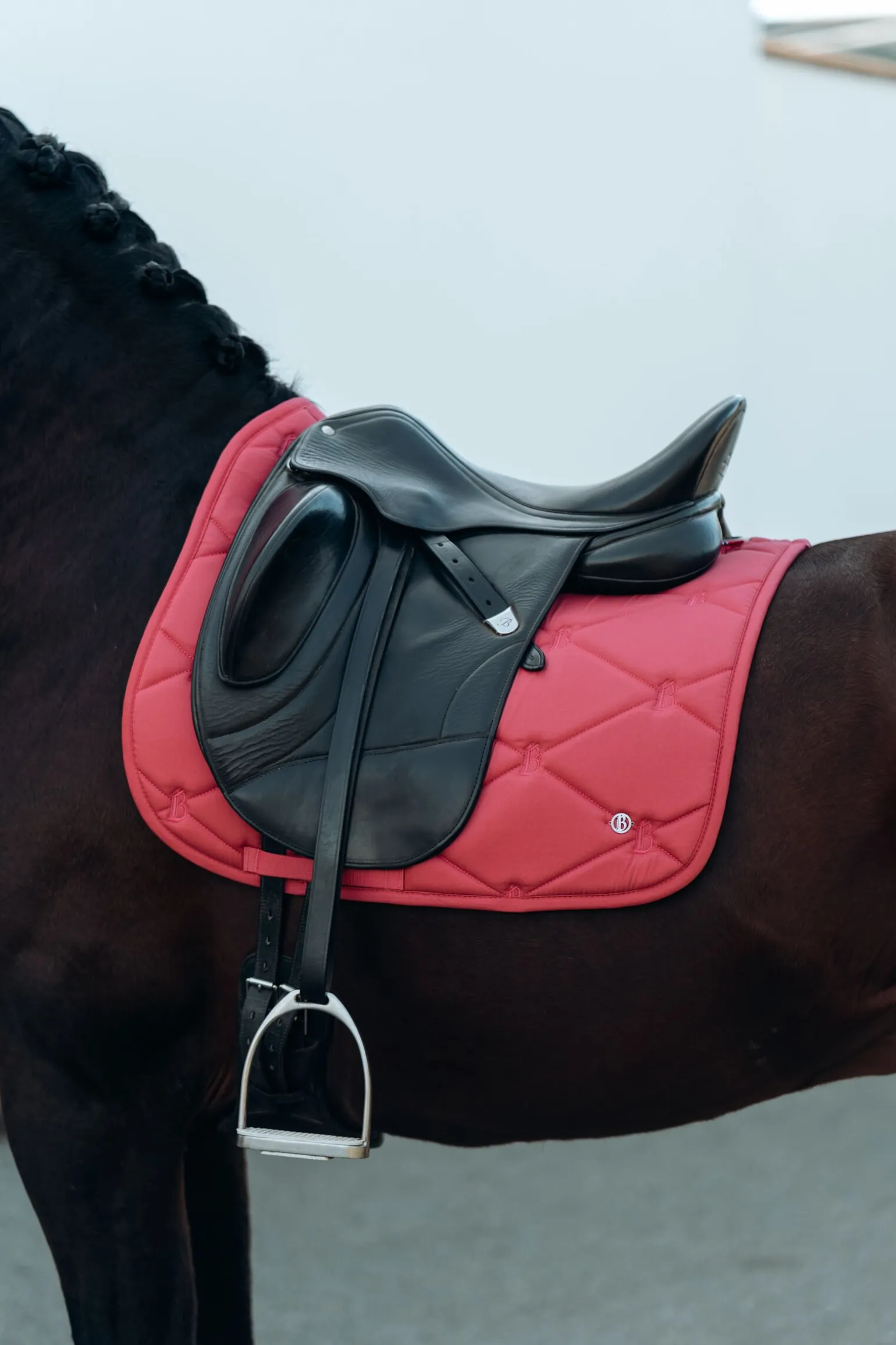 B Vertigo Laurel sjabrak er laget med hurtigtørkende fôr og firkantet vattering for å holde hesten din svært komfortabel mens du rir.Logobroderi gir et elegant preg, og sesongriktige farger gir det lille ekstra til sommerutstyret ditt.Denne sjabraken er også tilgjengelig som allroundsjabrak (#17380).Bruk den med B Vertigo Laurel ørehette og fleecebandasjer for et komplett utseende!