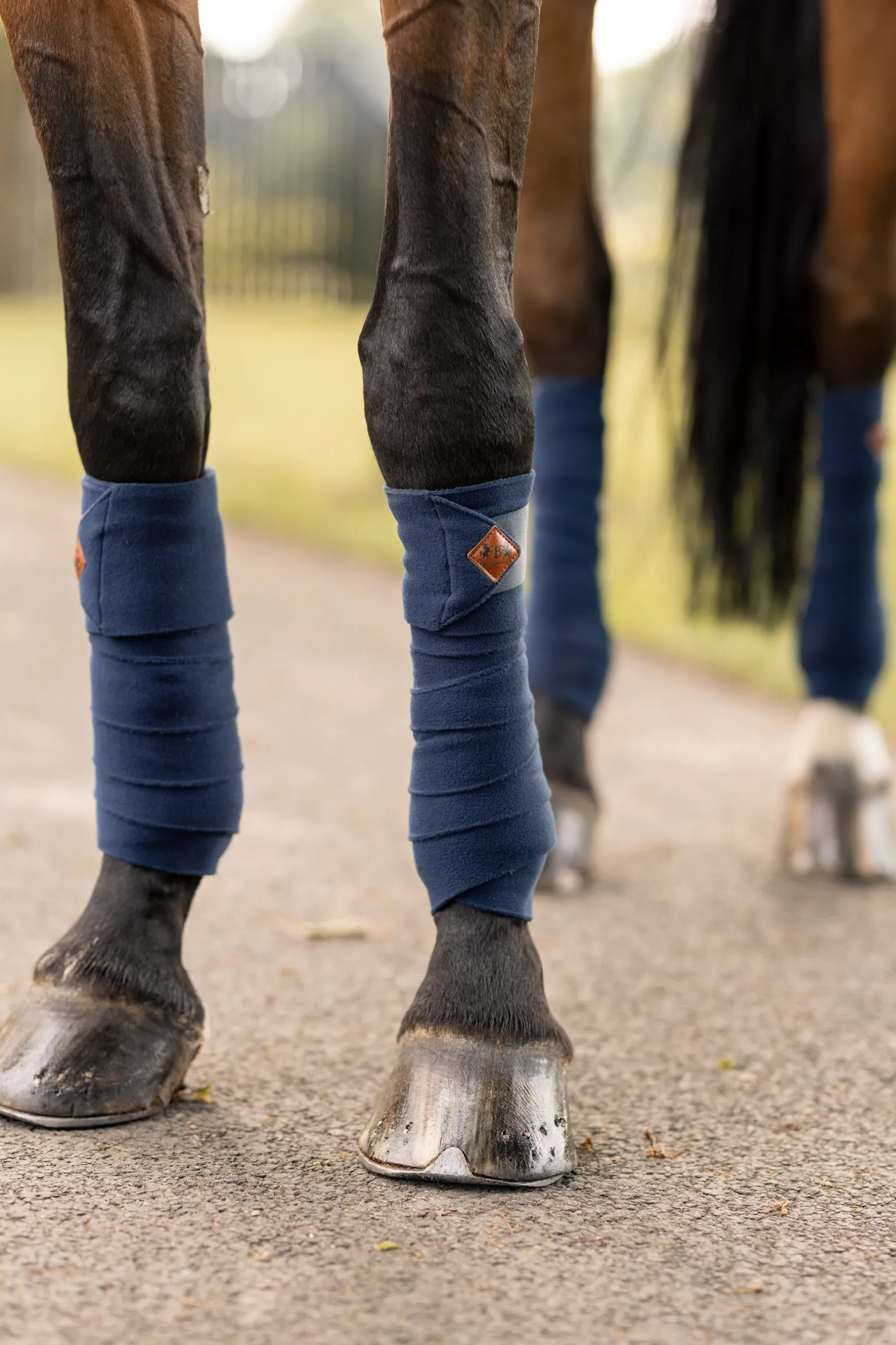 De er laget av mykt fleecemateriale som gir demping og støtte. Lengden på bandasjene kan kortes ned til ønsket lengde. Ved lukkingen er det logodetaljer i uekte lær som gir et stilig preg på bandasjene. Lukkingen kommer med ikke-klebrig borrelås, noe som gjør at hår og smuss ikke fester seg. Dette gjør dem også lettere å rense og vedlikeholde.