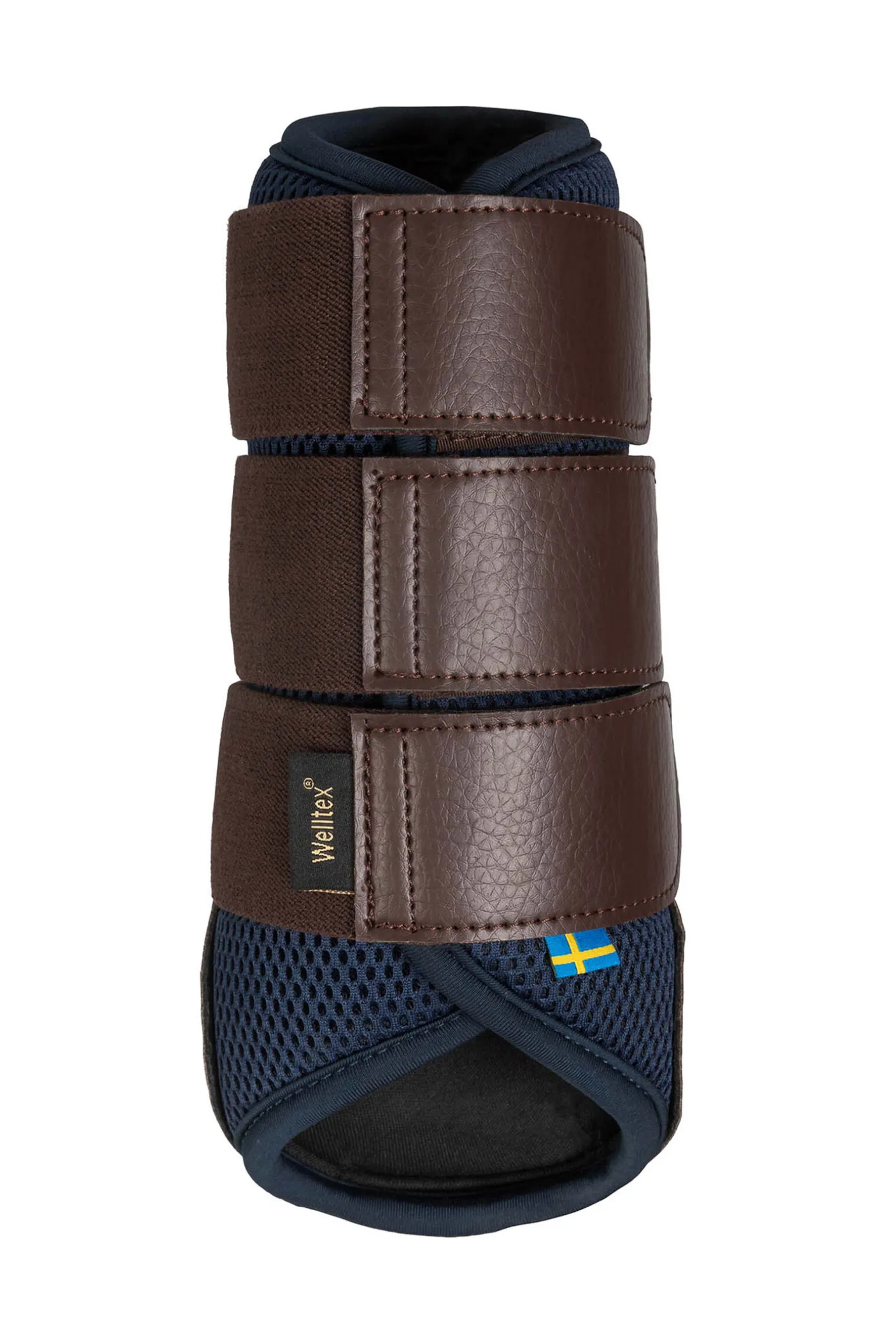Fleksible stryksokker i 3D mesh, med en støtabsorberende og trykkfordelende polstring som beskytter hestens ben mot slag og skader.Svært pustende for å forhindre overoppheting.Sterke borrelåsfester gir en komfortabel passform.Stilig design med kunstig lær over den forsterkede sonen, og på enden av stroppene.Innsiden er innsatt med Welltex® for å gi hesten din de beste forutsetninger for både å kunne yte og restituere.Denne teknologien kan stimulere blodstrømmen i området ved å reflektere infrarød energi, og støtter også sener og ledd.Disse allsidige og enkle beleggene passer både fram- og bakbein.For å få den beste passformen anbefaler vi å gå opp en størrelse for bakbeina.