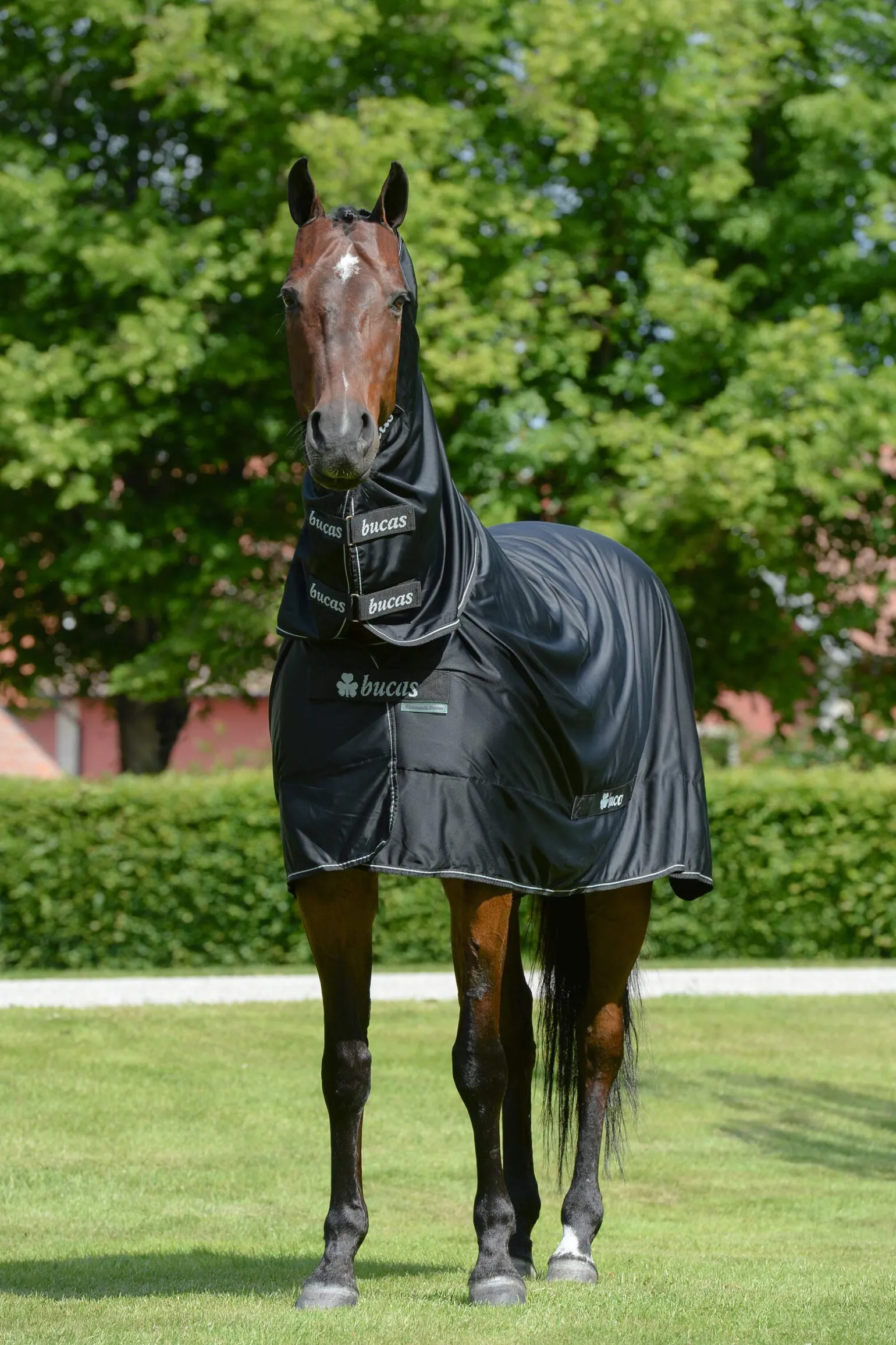 Shamrock Power er et ideelt flerfunksjonelt teppe som fungerer utmerket som et svettedekken, reisedekken eller lett stalldekken. Laget av to lag Bucas fukttransporterende stoff. Shamrock Power har et fukttransporterende antibakterielt innerfôr og en ytre polyesterlag. Det fukttransporterende stoffet kan legges på en våt hest og fjerner fuktighet, slik at hesten tørker raskere.Det antibakterielle fôret hjelper til med å holde teppet friskt og i god stand. Polyester-yttersiden avviser sengetøy, så hvis hesten legger seg ned, vil minimal sengetøy feste seg til teppet, i motsetning til fleece-tepper.