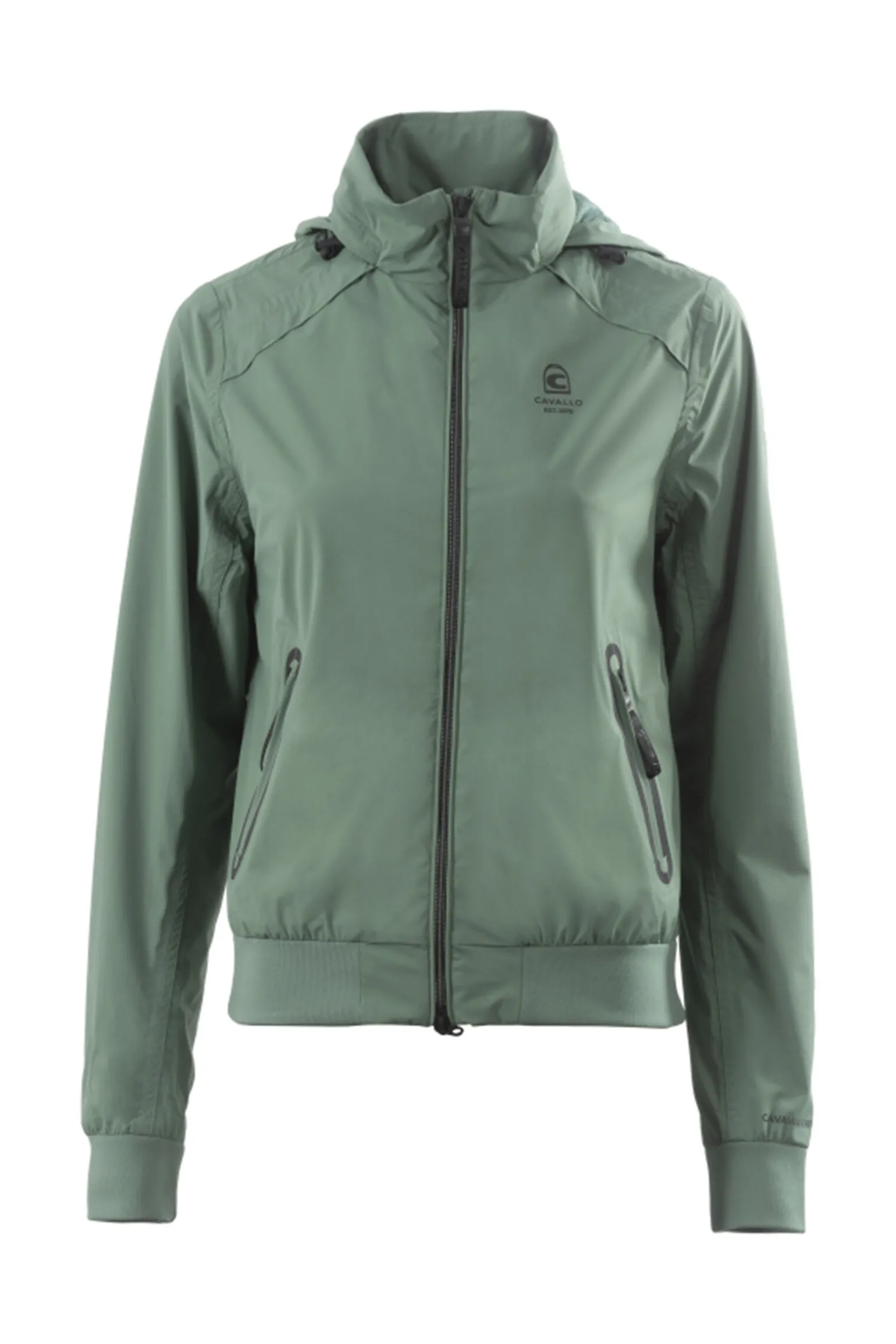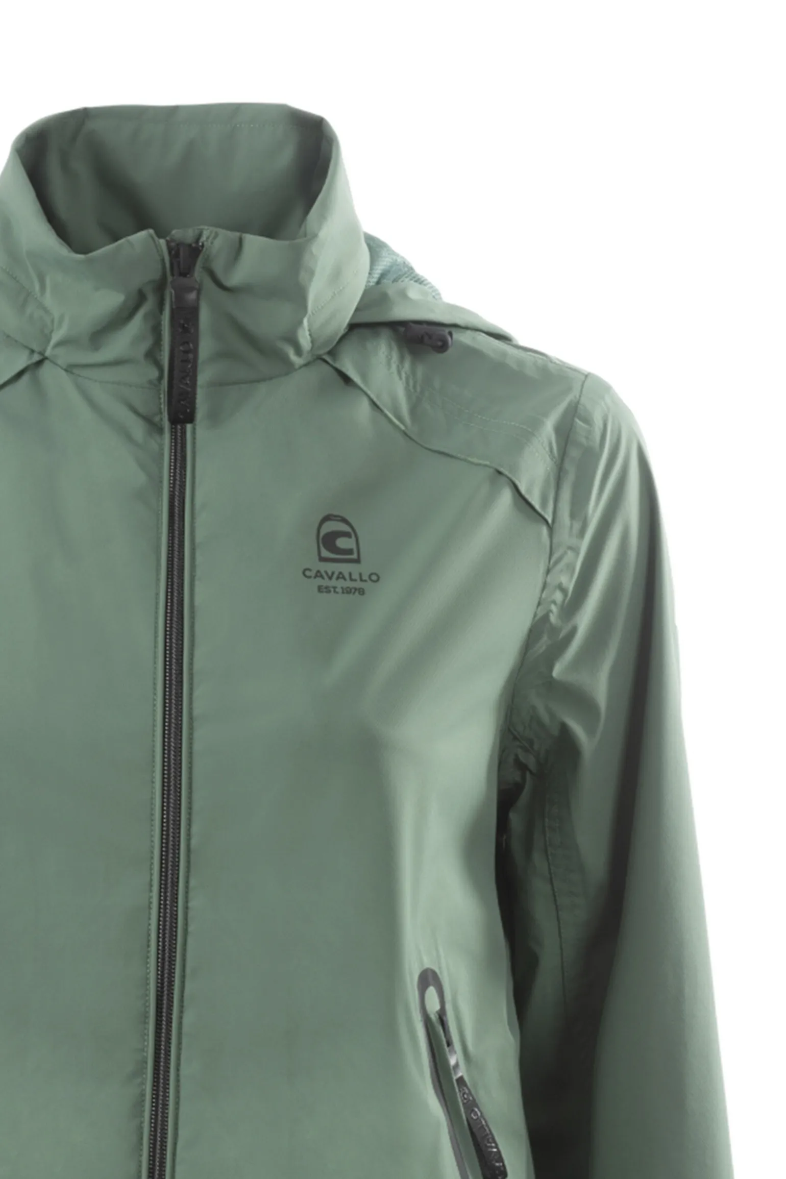 Med strikkede mansjetter og linning.2-veis glidelås foran.Avtagbar hette i krage.Alle kunstverk er svarte reflekterende for god synlighet. Alle detaljer (snorer, strikkede ermer, glidelås, brystlommer) er også holdt i svart.Ventilasjonssystem på bakstykket sikrer i tillegg perfekt luftsirkulasjon og pusteevne.To sorte glidelåslommer foran, en innerlomme innerfôr med allover logotrykk.