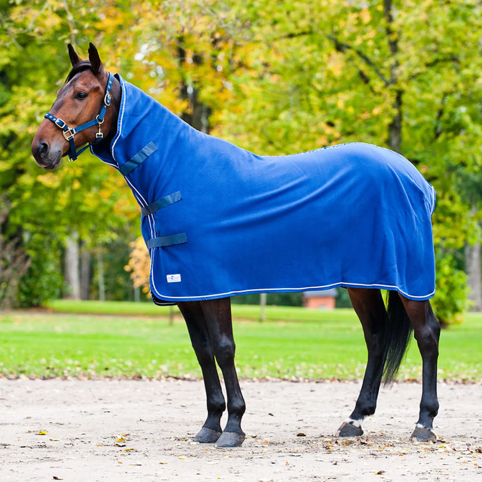 Fleecedekken med høy hals, som gir full beskyttelse rundt halsen. Perfekt for tørking av hesten etter trening og vask, eller til bruk under et tykkere dekken for ekstra isolasjon ved transport om vinteren. Dekkenet er utstyrt med et trepunkts-borrelåsfest