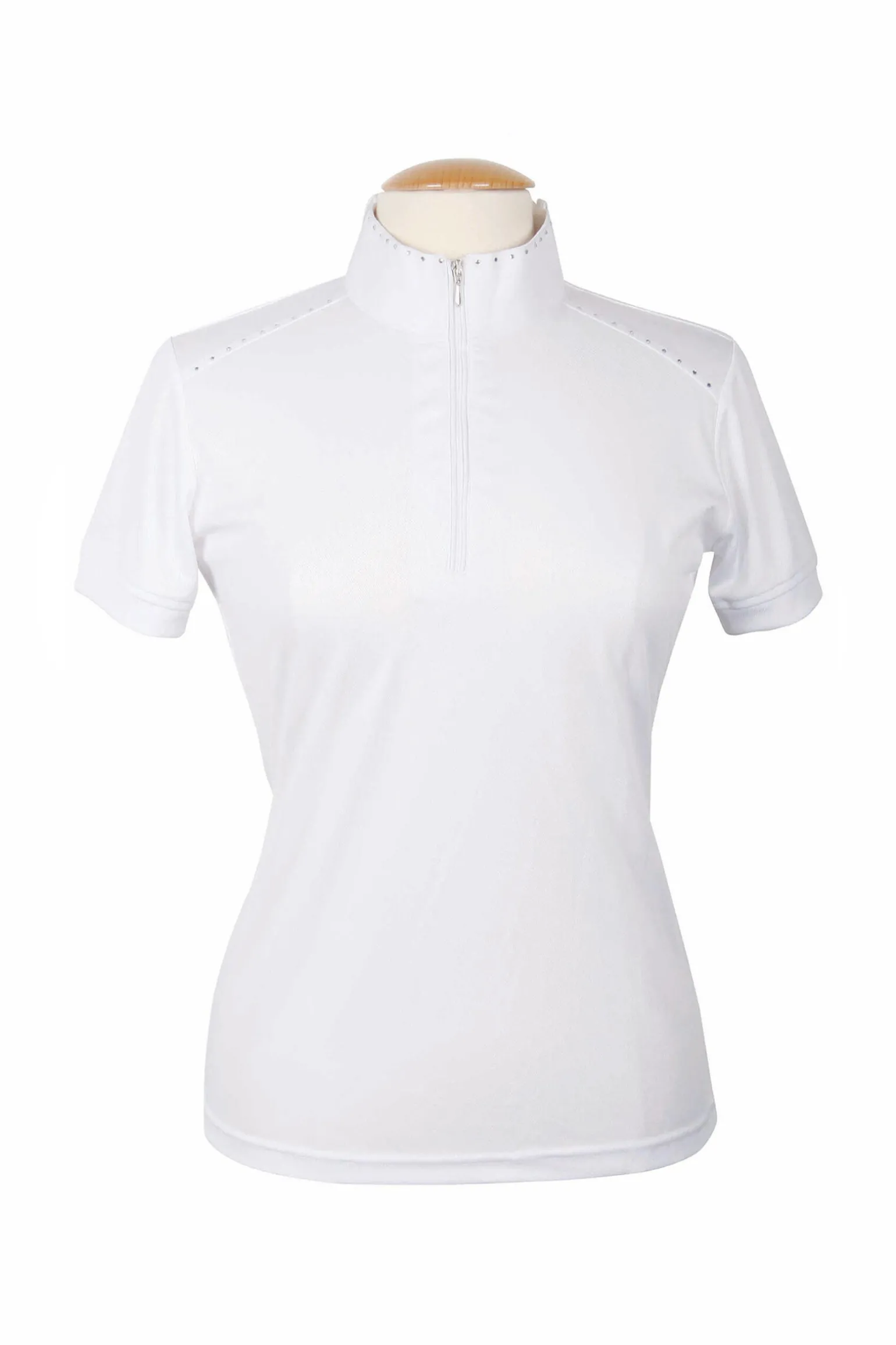 Luksuriøs stevneskjorte med strasskrystaller, glidelås og stående krage med slipshemper.
