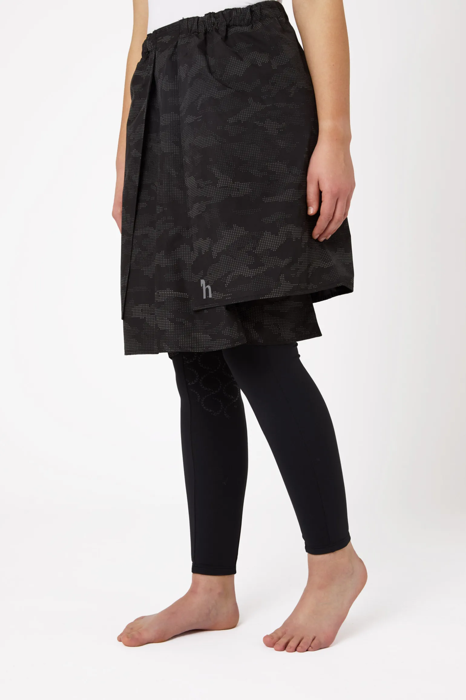 Dette skjørtet med reflekterende trykk er ideelt som regntrekk.Stoffet er dekket av et kult trykk til vanlig, og når lyset treffer blir det helt reflekterende.Skjørtet beskytter beina og seteområdet mot regn.Et elastisk liv gjør det enkelt å bruke.Bruk den med Camo Luminox vest (#33980) for et helhetlig utseende.