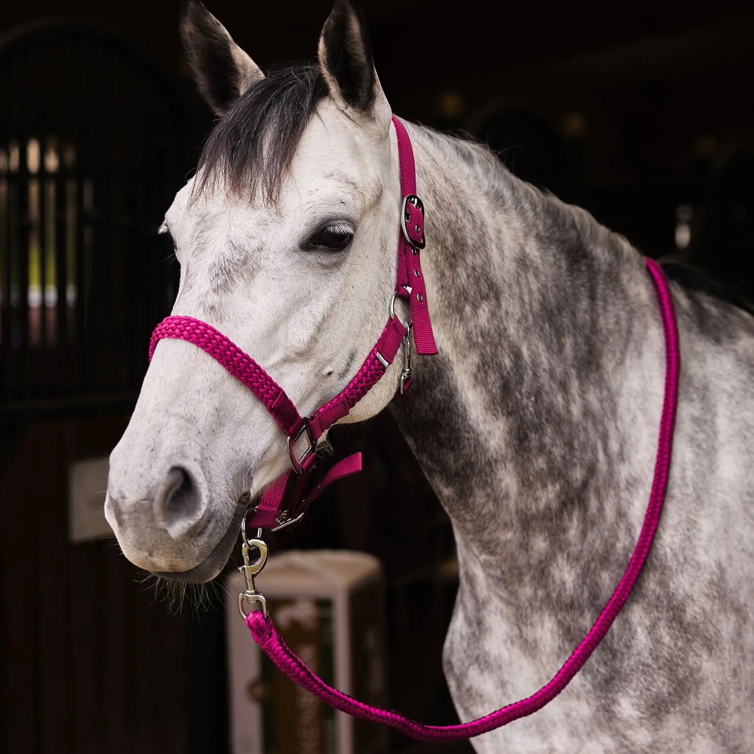 Fletting på siden og over nesa gir et fint utseende på dette settet med grime og leietau. Det flettede mønsteret matcher leietauet. Den justerbare nakkereima og justeringsmuligheten rundt nesa gjør at du får en perfekt passform.