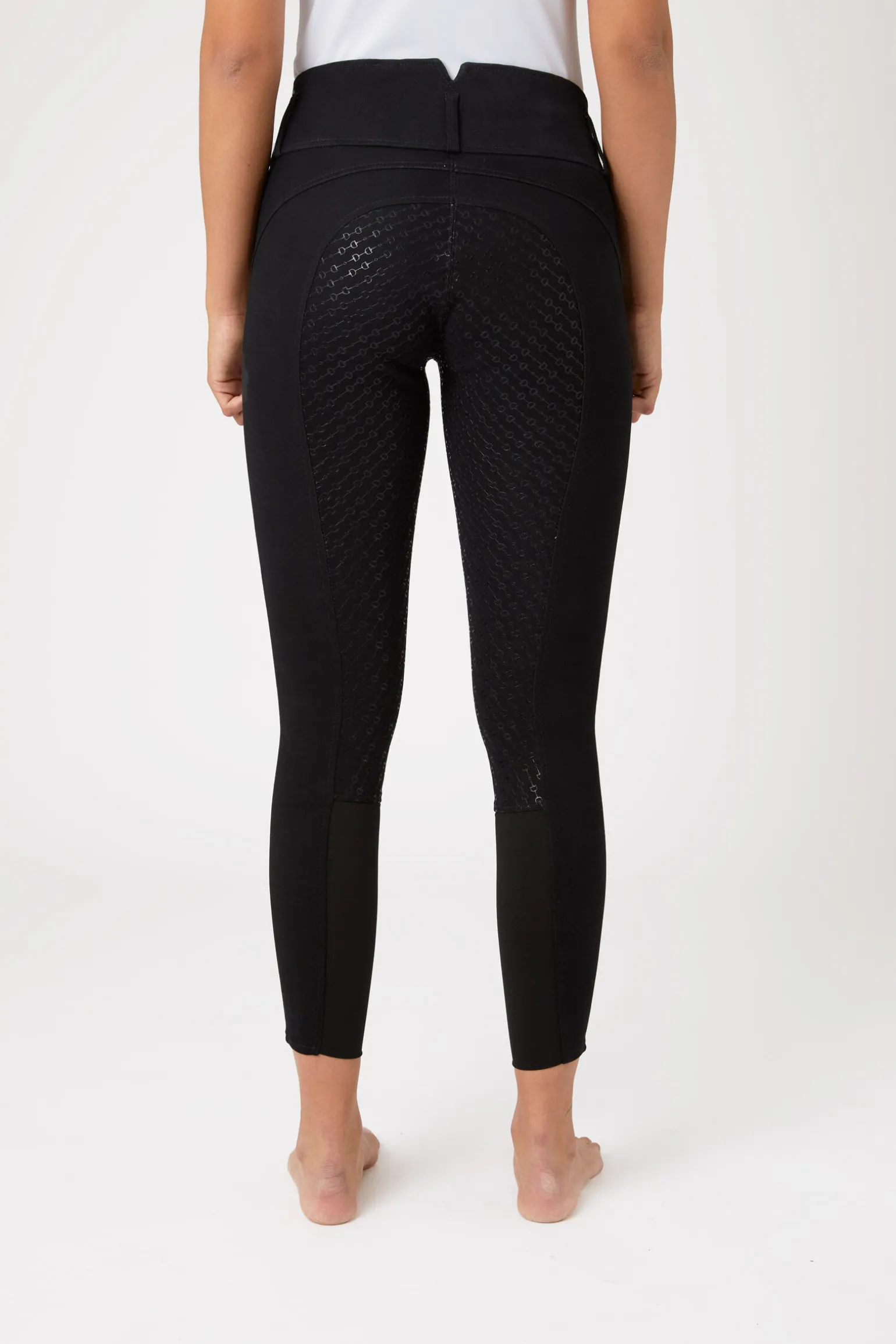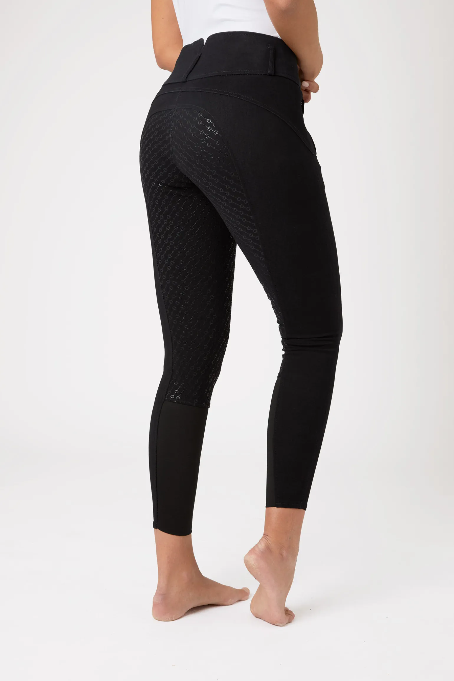 Tradisjonell utforming kombinert med et friskt silikontrykket sete og lår-område gir en moderne oppdatering av din favorittridebukse. Det høye livet på disse tradisjonelle ridebuksene er komfortabelt og støttende, og litt høyere bak. Disse ridebuksene har et stilig repeterende bitt-trykk for et unikt utseende. Klassiske farger som passer bra til trening, og et hvitt alternativ tilgjengelig for stevne.