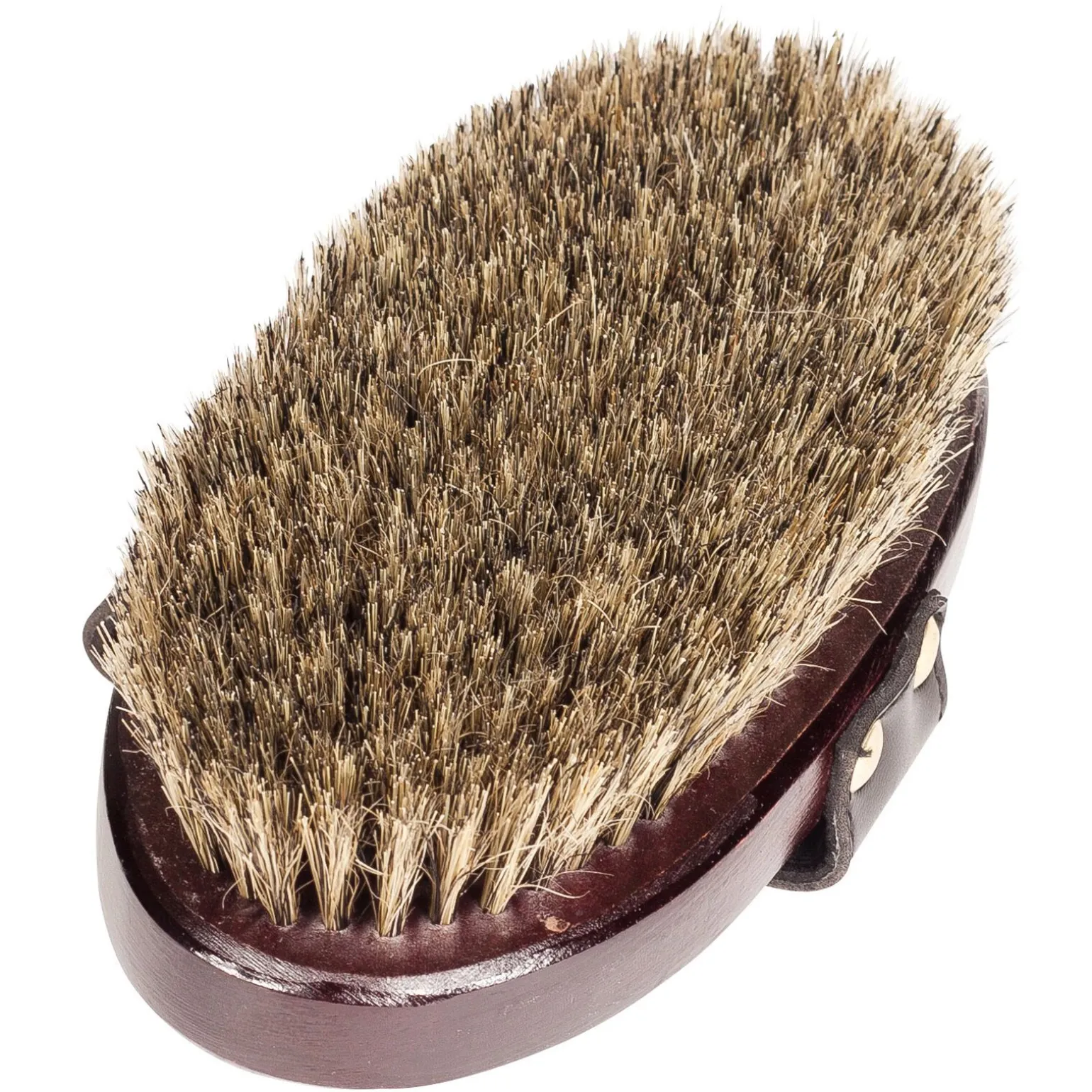 Materialer: blandet svinebust, trerygg, lærhåndtak.