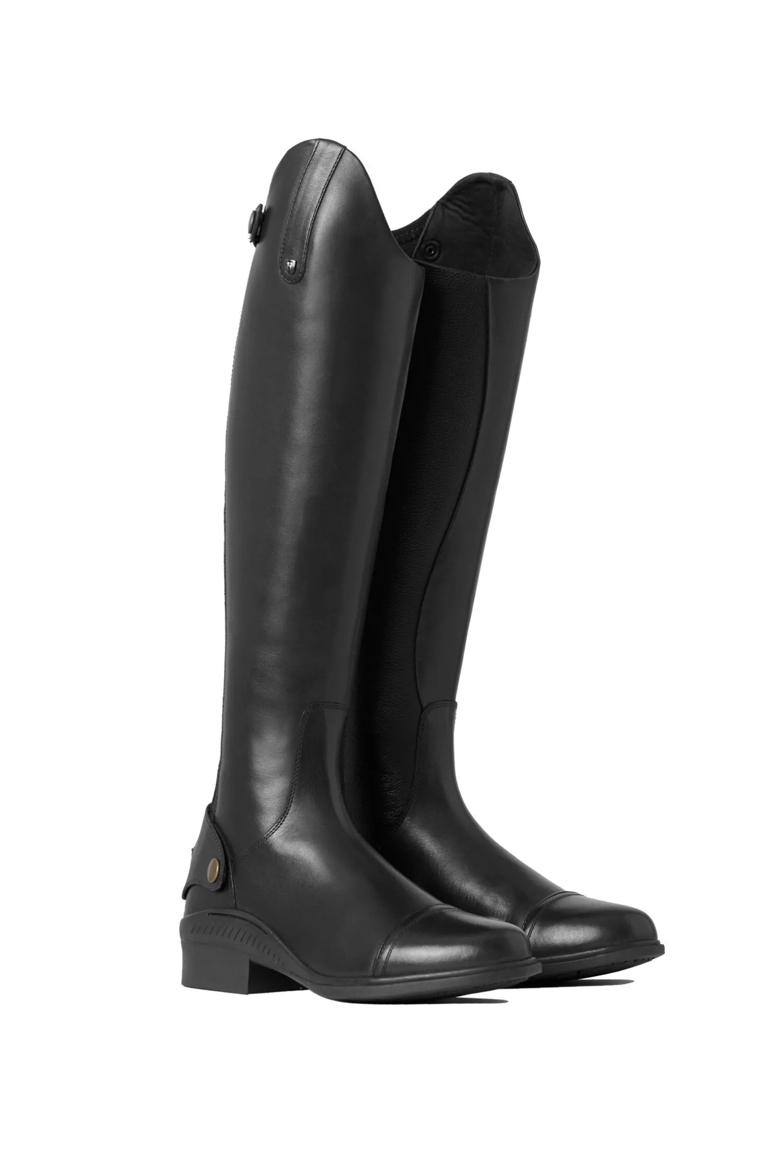 Disse ridestøvlene i høy kvalitet er laget av tynt, argentinsk lær som er mykt og vil bli mer behagelig ved bruk. Nettingfôret er pustende og hjelper med å holde beina kjølige. Trykket lær på innsiden gir utmerket grep, og den Horze-merkede gummisålen er svært holdbar og hjelper foten med grepet i stigbøylen. Glidelåsen går langs hele skaftet bak, elastiske paneler langs glidelåsen gir perfekt passform. En lærstropp med trykknapp på toppen og bunnen av glidelåsen sikrer at den ikke åpner seg. En liten, skinnende Z-logo i metall på leggen og gir det perfekte utseendet.