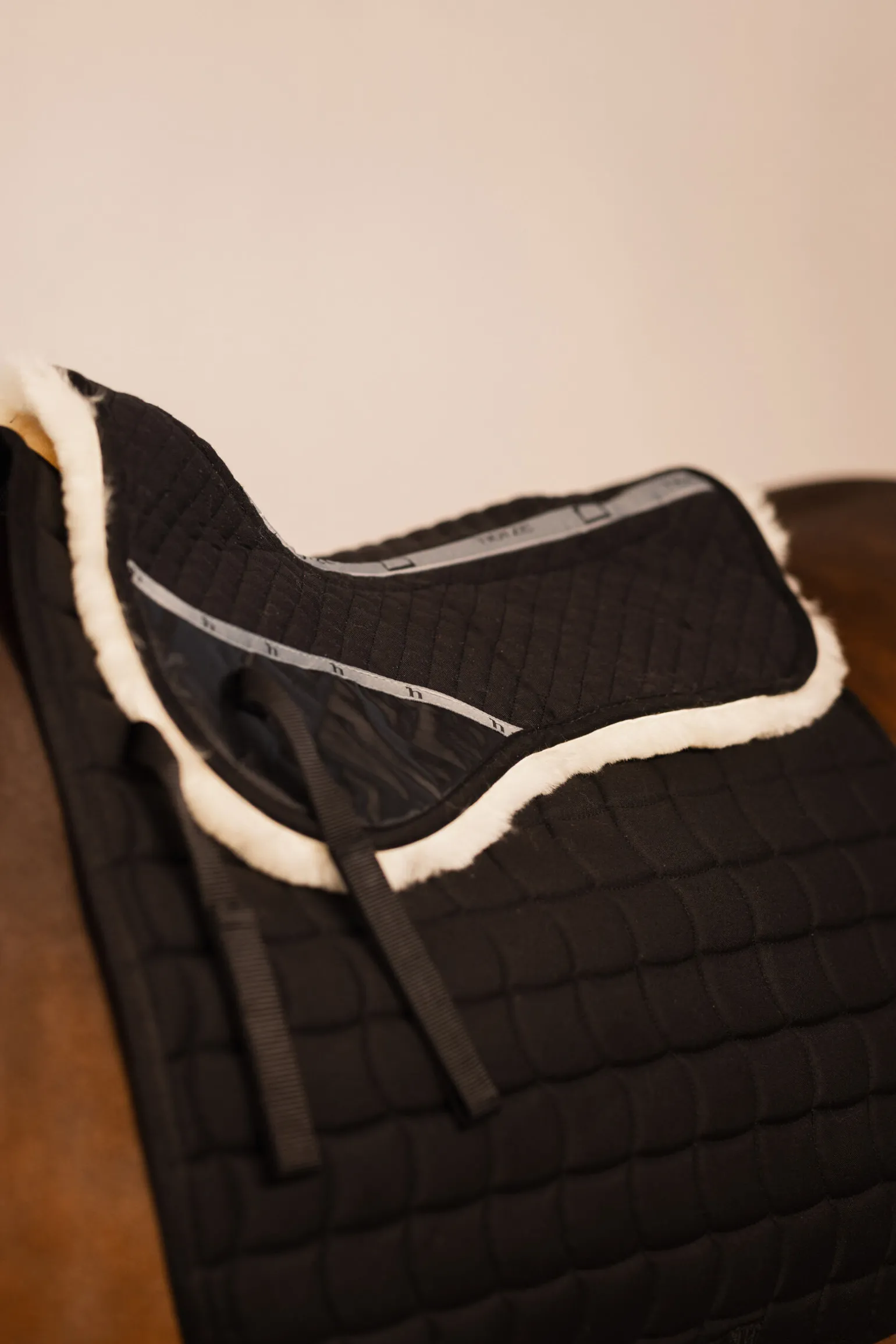 Forsikre deg om at salen ligger skikkelig og gir ultimat komfort på hestens rygg med denne halve forhøyningspaden med et supermykt saueskinnsfôr. Kanalen tillater en perfekt passform og korreksjonspaden løfter salen, forhindrer gnag og lar hestens rygg puste. Den stilige paden er laget av utmerket materiale for kvaliteten du ønsker i saltilbehøret ditt.