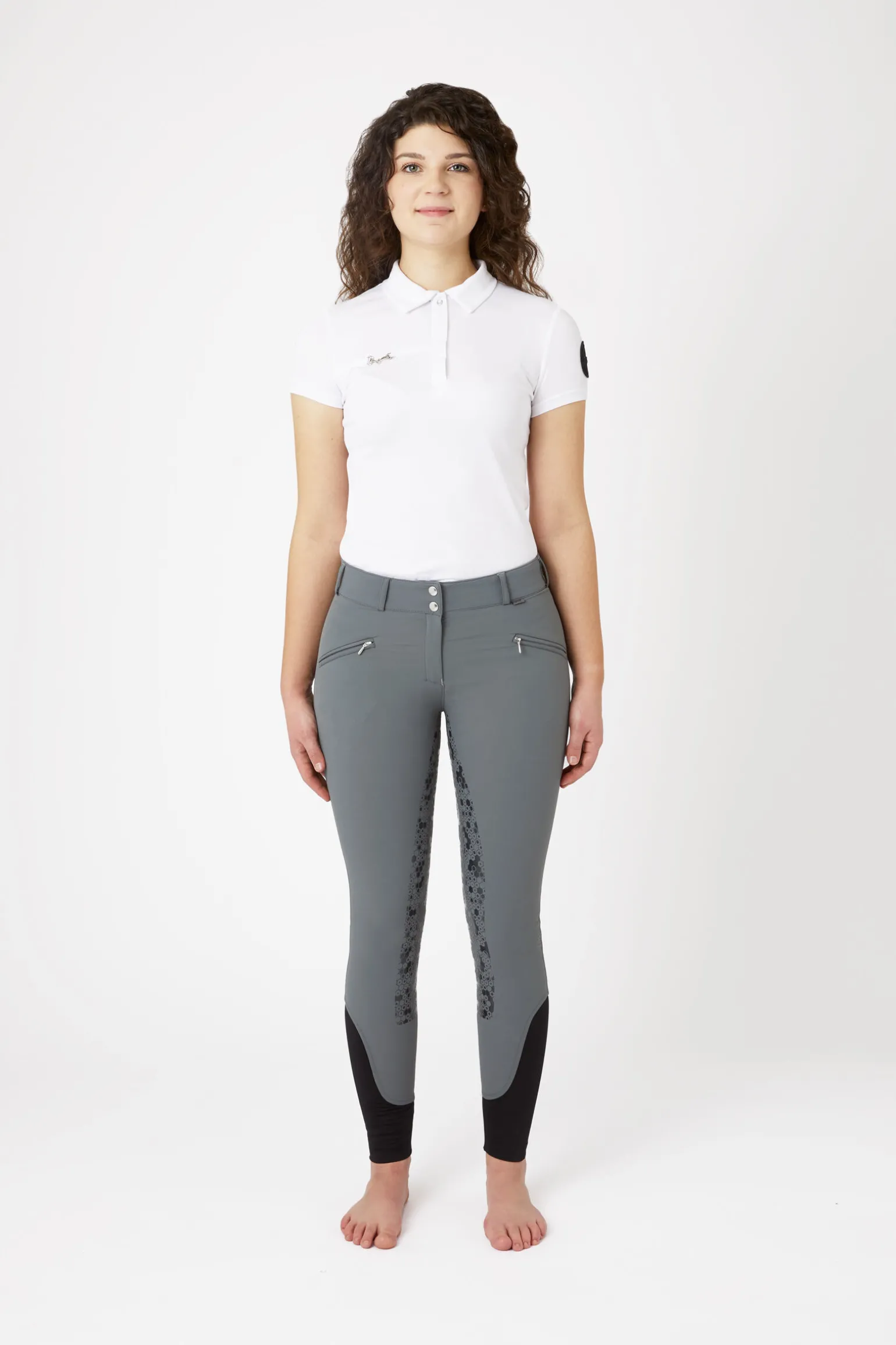 Disse ridebuksene med høyt liv passer som en drøm og holder deg trygt i salen med det helforsterkede silikonsetet.To små lommer holder på nøkler og godbiter.Elastiske ben nederst passer perfekt i dine favoritt-ridestøvler.Velg mellom varierte farger etter hva som passer din ridegarderobe best.
