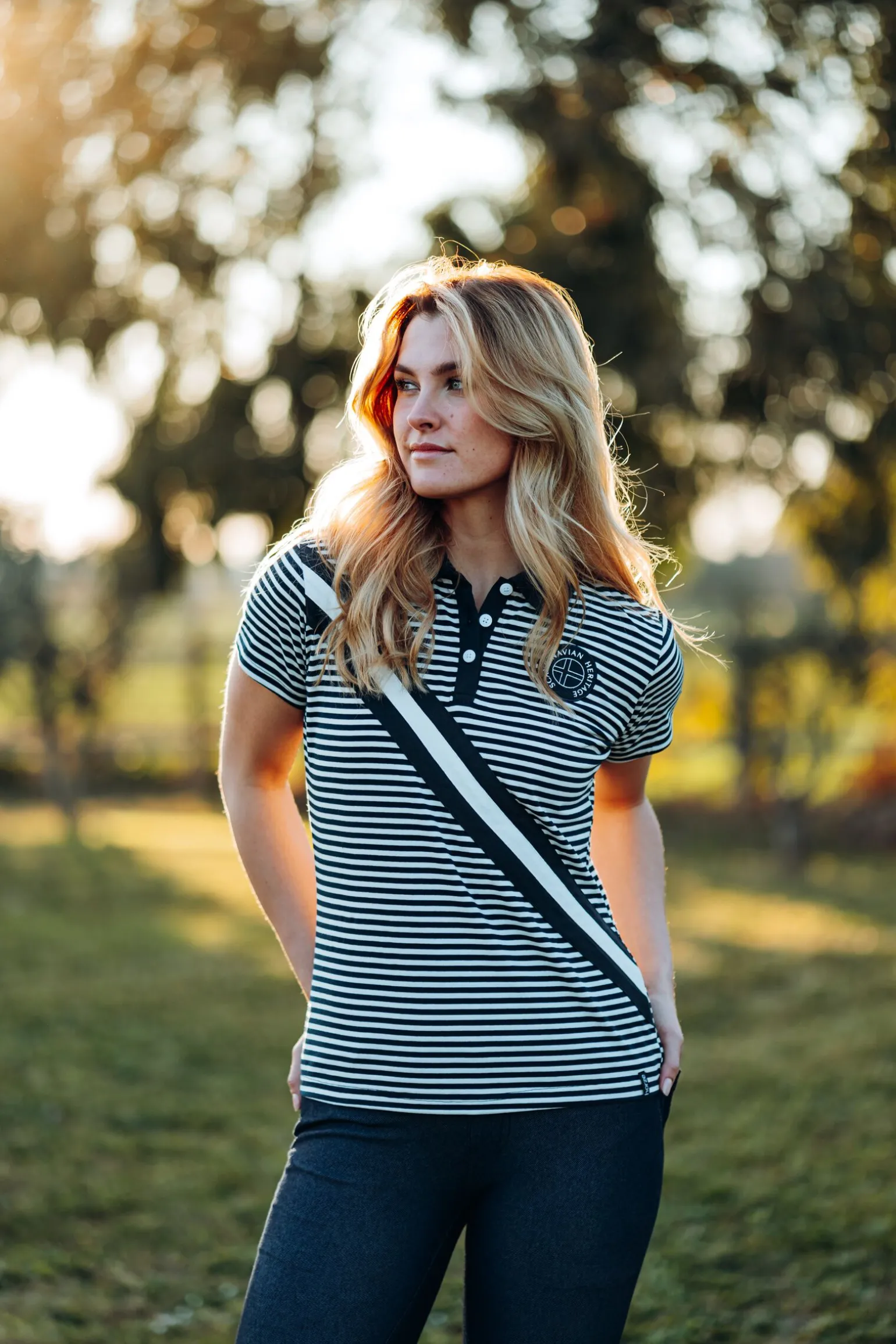 Horze Jessie t-skjorte er laget av pustende materiale som er perfekt til din daglige ridning.Det sportslige designet med krage og kontraststripe matcher din ridegarderobe.Knapper på knappestolpen gir ekstra ventilasjon ved behov.Broderiet på brystet er tidløst og ser stilig ut.Bruk den til ridning, i stallen eller på fritiden.Den kan lett brukes med ridebukser, tights eller jeans.