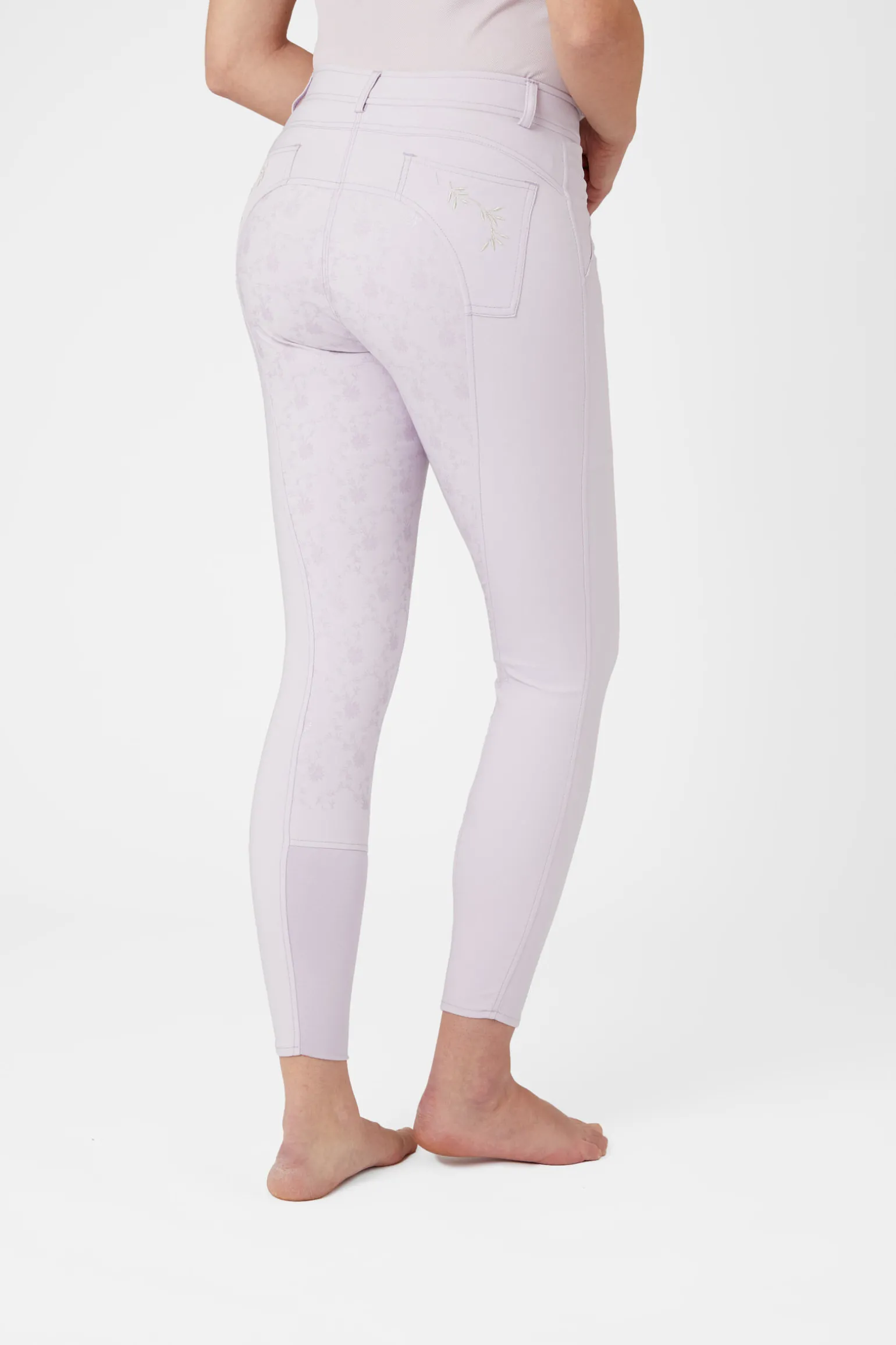 Horze Kaitlin ridebukser er laget av mykt, elastisk materiale.Glidelåslommer foran holder telefonen din trygg.Baklommene er brodert med sølvblader, som matcher det helforsterkede, blomsterlige mønsteret i silikon.Diskrete farger vil matche din ridegarderobe.
