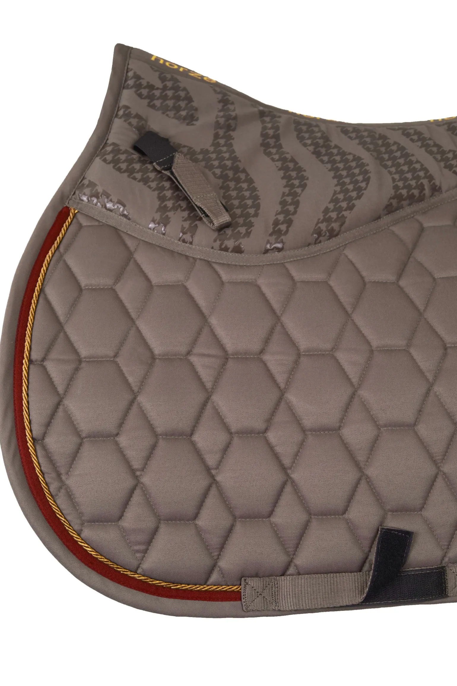 Den anatomiske utformingen på Horze Kenya sjabrak kommer med silikondetaljer for å forhindre salen fra å skli.Lett polstring under salen gir ekstra komfort.Fukttransporterende underside holder hestens rygg tørr.Tre rader med bånd og det tidløse designet gir et klassisk utseende.Metalliske detaljer gir et elegant preg.Bruk denne sjabraken med resten av vår Horze Kenya-kolleksjon for et helhetlig inntrykk.