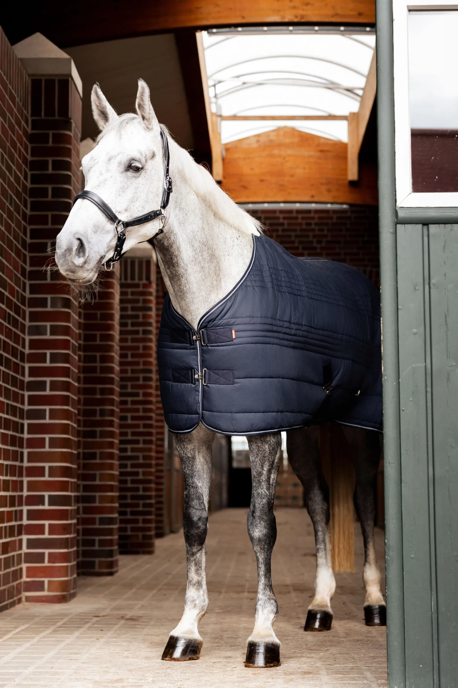 Det lette Horze Kingsley stalldekken med 150 gram fyll er akkurat tykt nok til et varmt lag uten å bli klumpete. Doble T-spenner for lukking foran, og kryssgjorder holder dekkenet på plass sammen med en halesnor. Dette dekkenet er robust nok til å brukes som utedekken også!