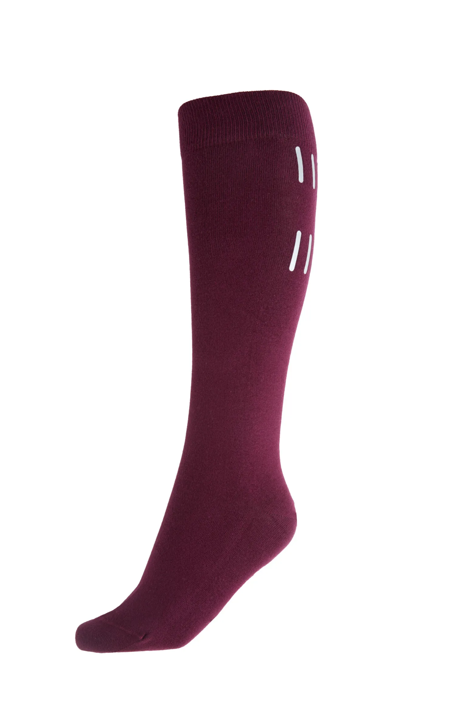 Horze Luminox sokker er knehøye og strikket i et varmt materiale. Reflekterende trykk gir synlighet i mørket dersom du bruker dem over ridebuksa, og går med stallskoene dine.