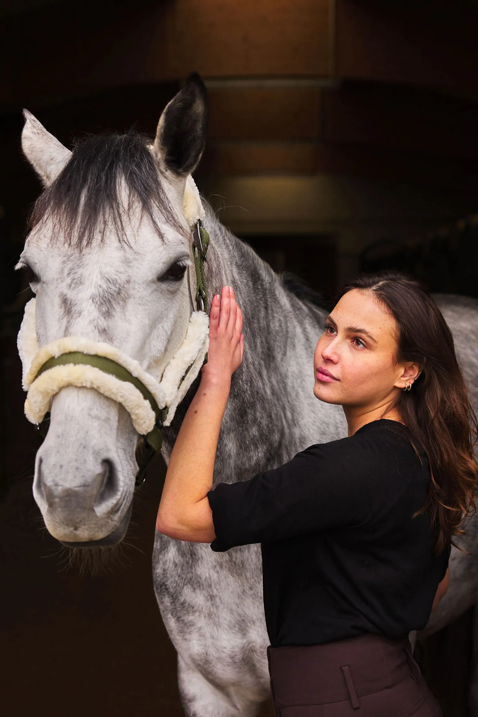 Horze Marquess grime er fôret med myk fuskepels for en komfortabel følelse på sensitive områder.Justerbare spenner over nakken og ved mulen sikrer den perfekte passform.Dempede farger og svarte spenner er tidløse og pene.Bruk dem med vår matchende Marquess leietau (#22624) for et komplett utseende.
