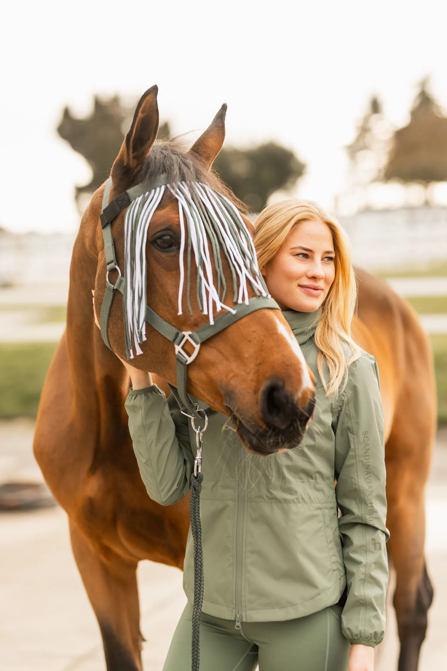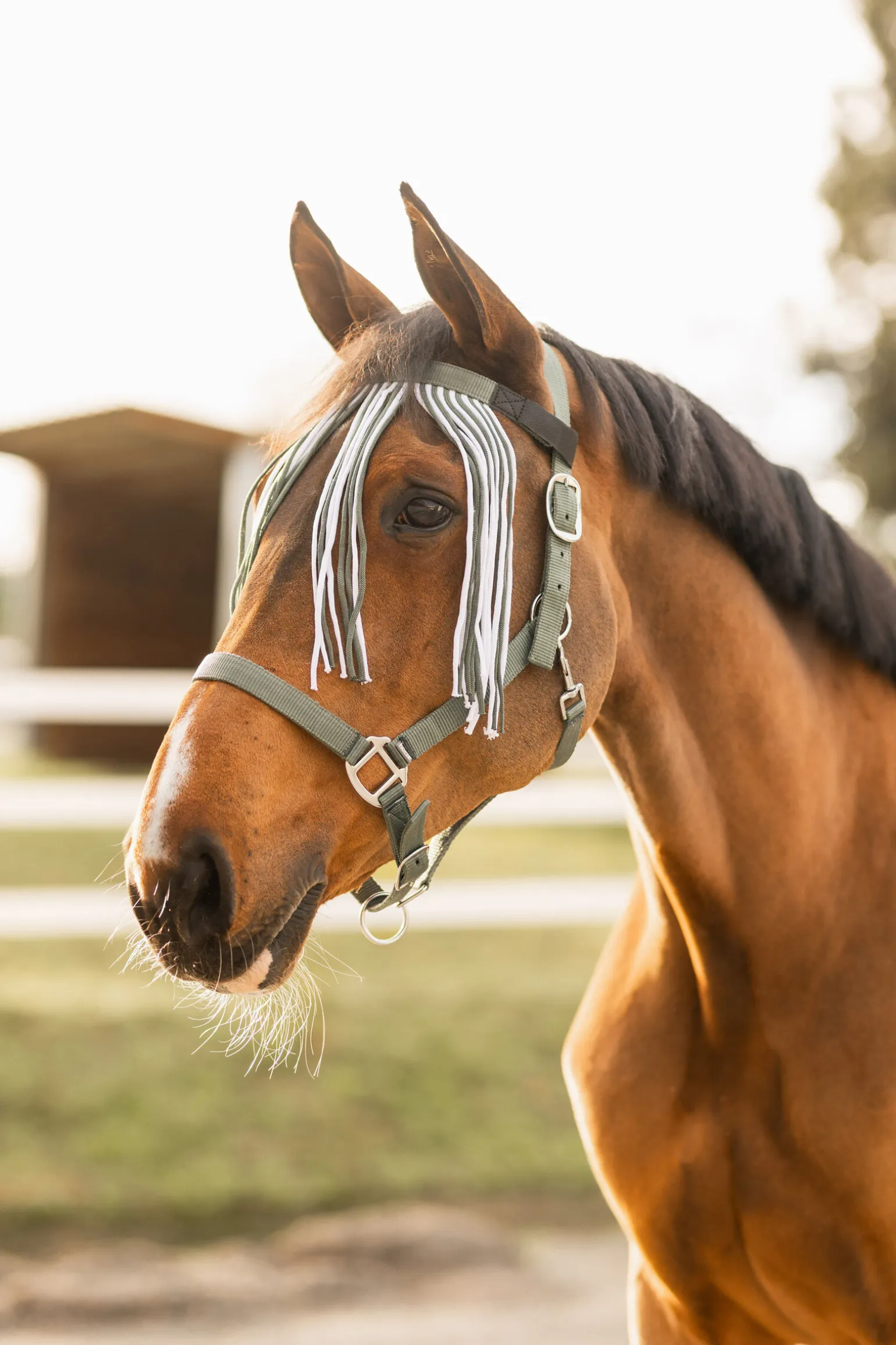 Horze Moreton settet er designet i nøytrale farger for å matche ditt eget utstyr gjennom hele året.Grimen kan justeres så den passer perfekt til hestens hode, og det flettede leietauet er robust og enkelt og holde.De avtakbare fluefrynsene holder distraherende insekter borte ved behov.