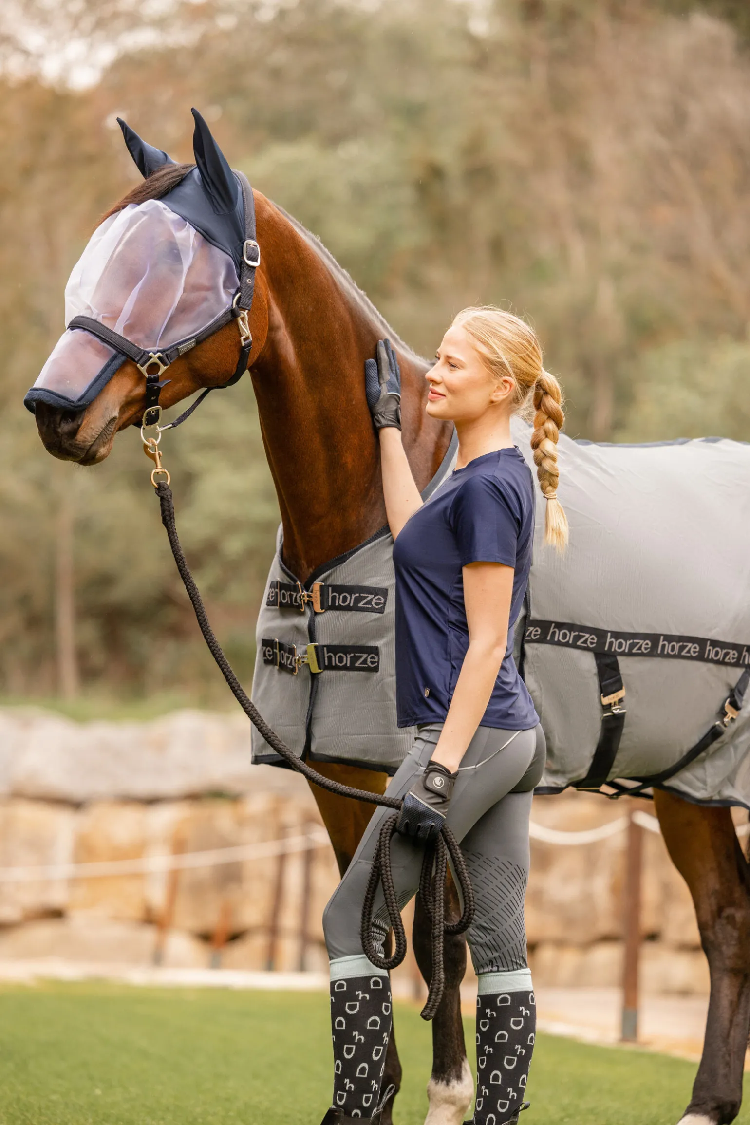 - Horze logobånd langs siden og på frontlukkingen