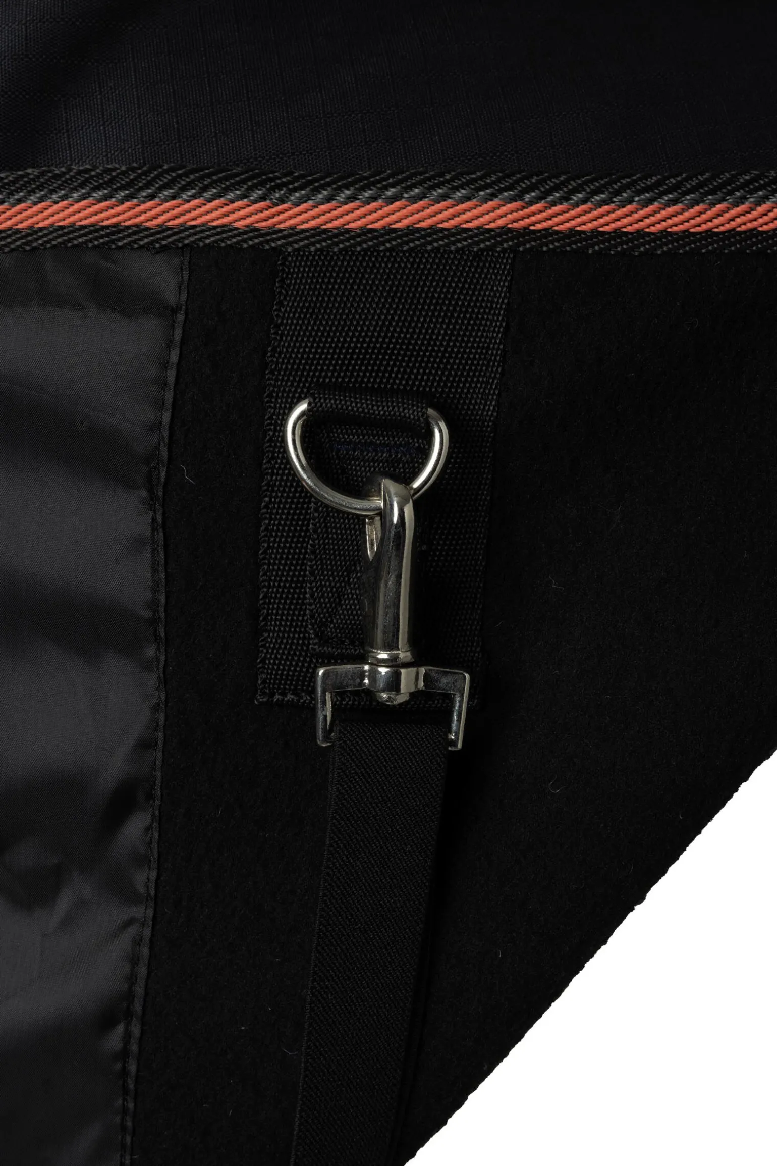 Ytterstoff: 600D ripstop polyester. Polyesterfleecefôr til dryppstripen.