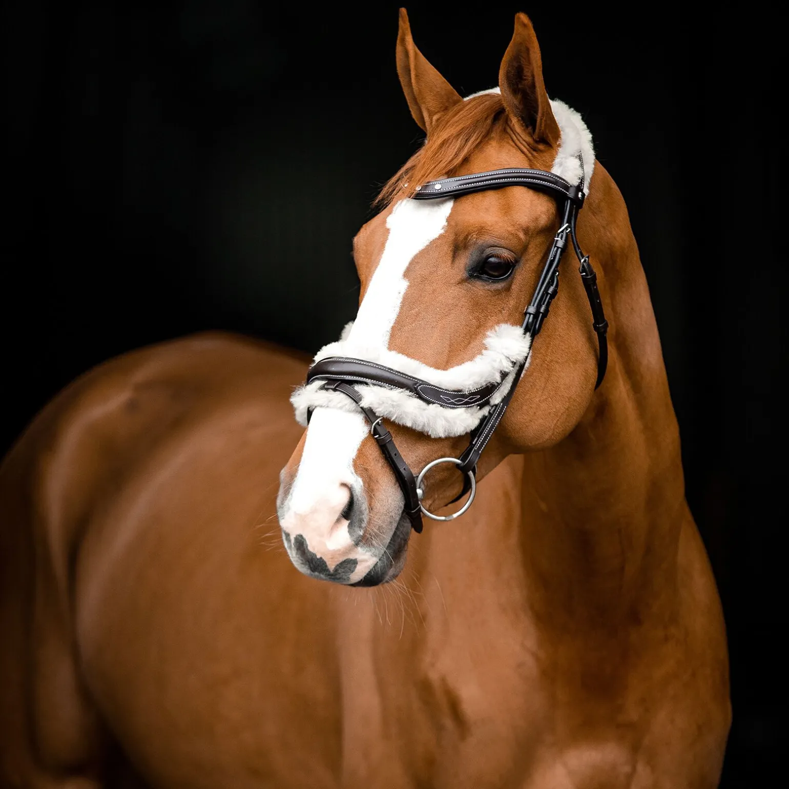 Det anatomisk formede nakkestykke er utviklet for komforten til din hest og gir ekstra glans på utstyret med små, glitrende krystaller. Dette hodelaget kommer med to avtakbare innsider i fuskepels og supermykt lær, begge er ekstremt enkle å bytte med borrelåsfester. Fuskepelsen vil føles superbehagelig mot hestens nese. Dette hodelaget har også flash-nesereim med pull-back.
