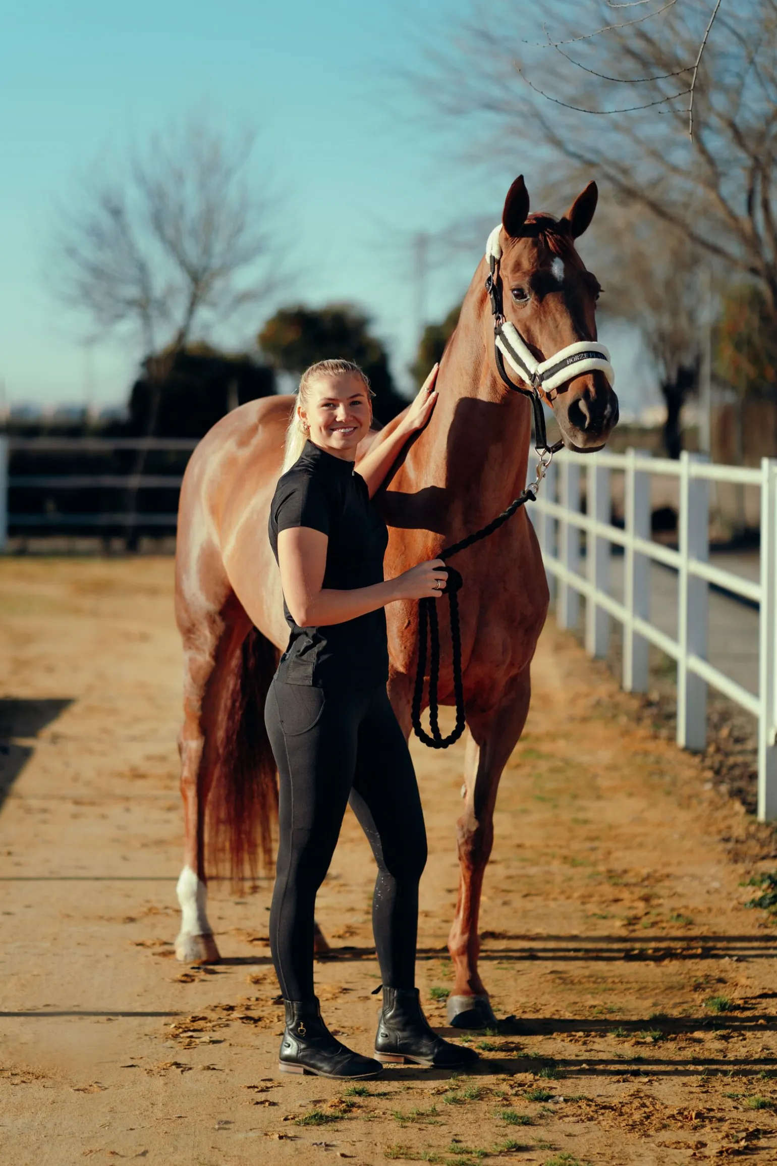Horze Stanford grime er laget med supermyk fuskepels på nesen, nakken og kinnet, som føles komfortabel mot hestens hud.En sølvsnor i lurex på nesen gir et luksuriøst preg.Spenner i børstet stål gjør denne flotte grimen komplett.Bruk den med Stanford leietau (#22639) for et helhetlig utseende.