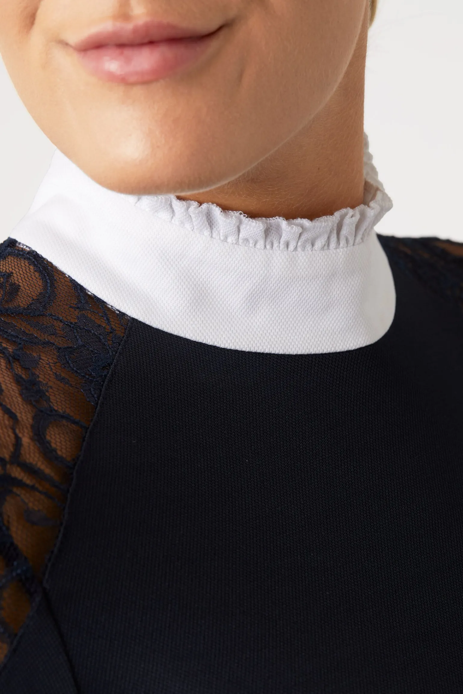 Horze Sylvie langermet stevneskjorte er laget med nydelige blondedetaljer og krystallogo på brystet.Denne vil gjøre at du skiller deg ut fra alle andre, samtidig som du ser superstilig ut!Pustende stoff gir deg perfekt ventilasjon, mens de hurtigtørkende materialene trekker vekk fukt.