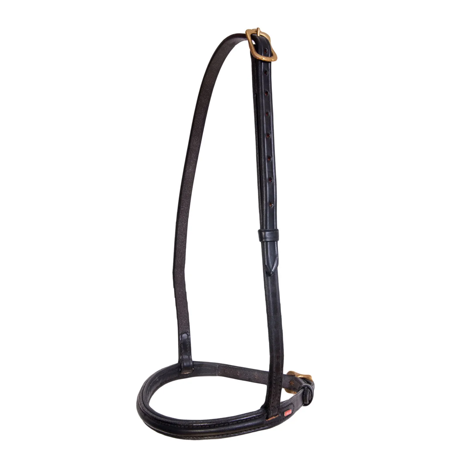 Engelsk nesereim i sort lær av høy kvalitet.