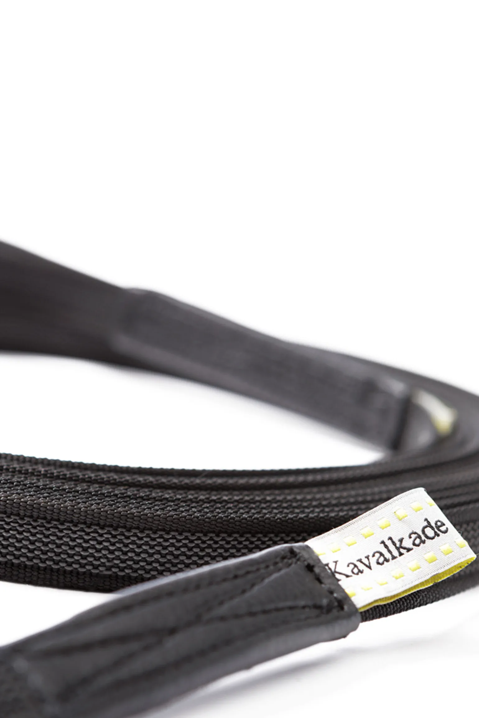 The lunge «Grip» is made of rubberised reins material for more grip and better handling. The lunge is attached with a carabiner, the end piece has a loop. Please use glooves.