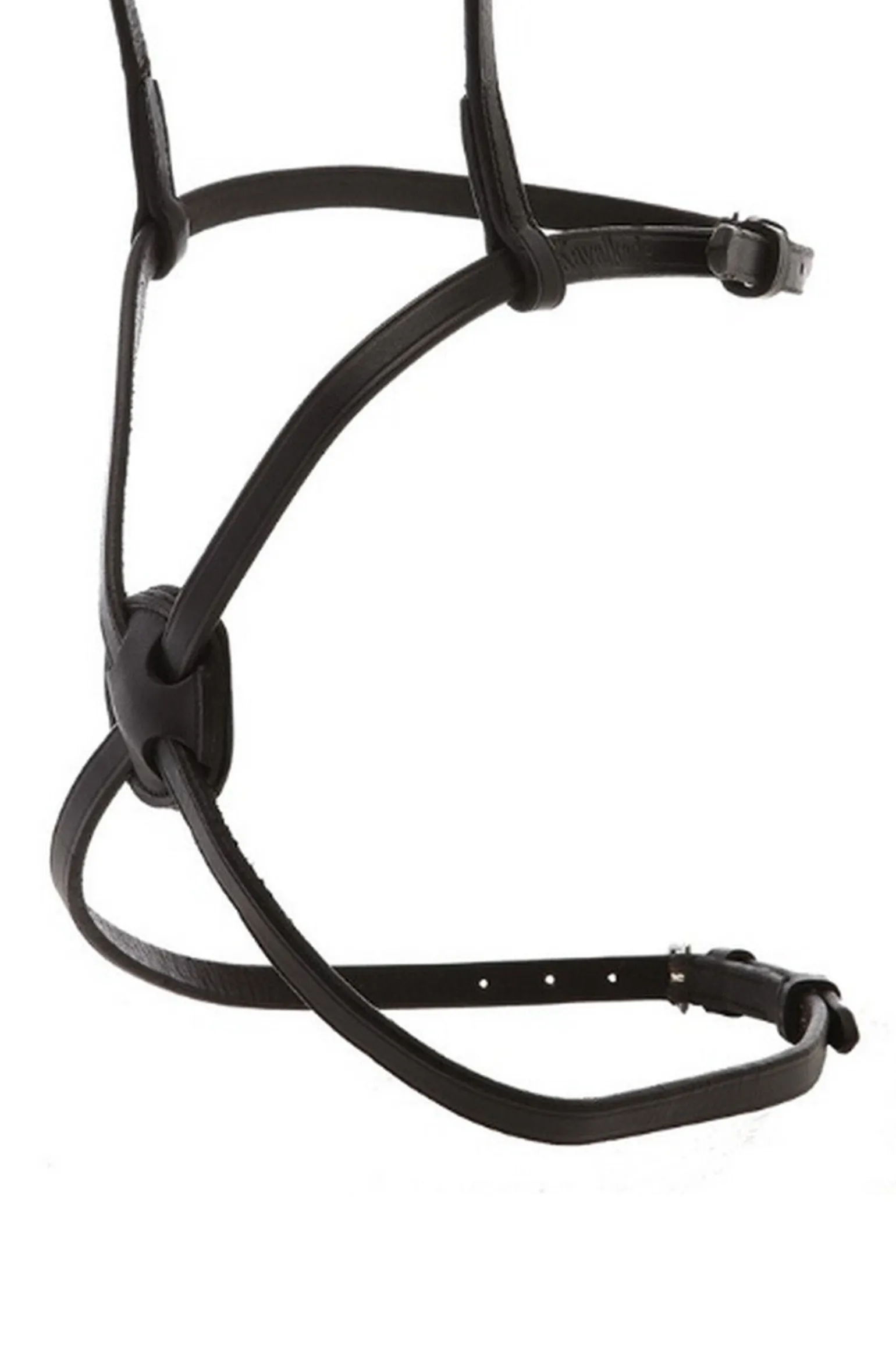 Kryssnesereim laget av lær av beste kvalitet, håndsydd og polstret med mykt, svart lær.Ekstra bred nesereim.