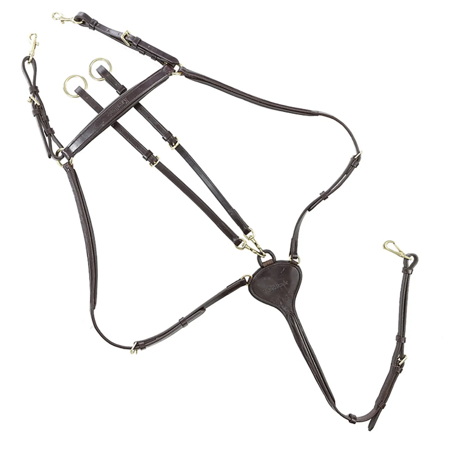 Laget av tysk kvalitetslær, inkludert justerbar martingal-gaffel. Med dekorative sømmer. Flere justeringsmuligheter med myk polstring.