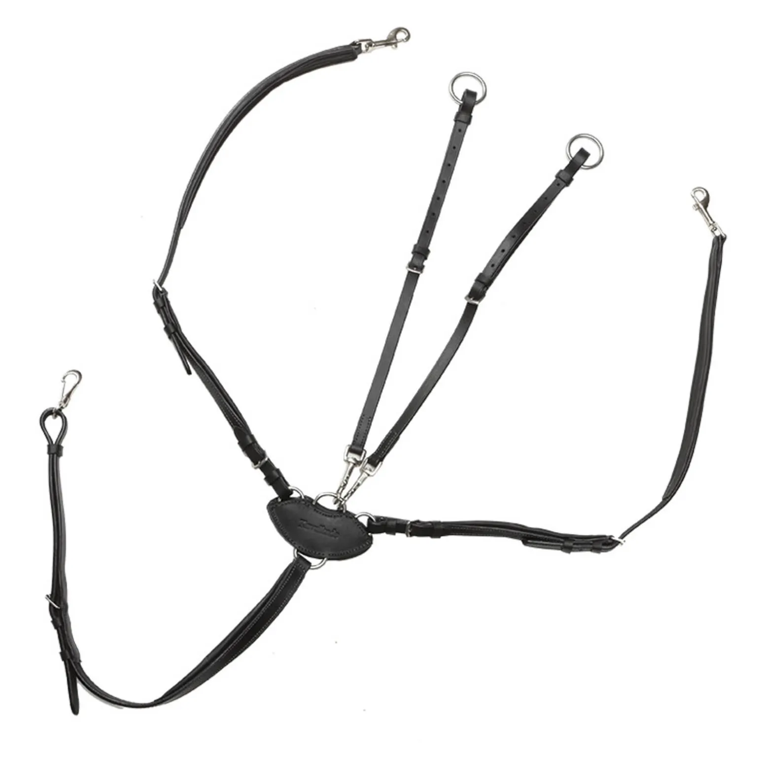 Mykt lær i høy kvalitet, med myk fôring.Kan festes direkte til salen uten noe over manken.De elastiske innleggene til Diandro fortøy passer dette.