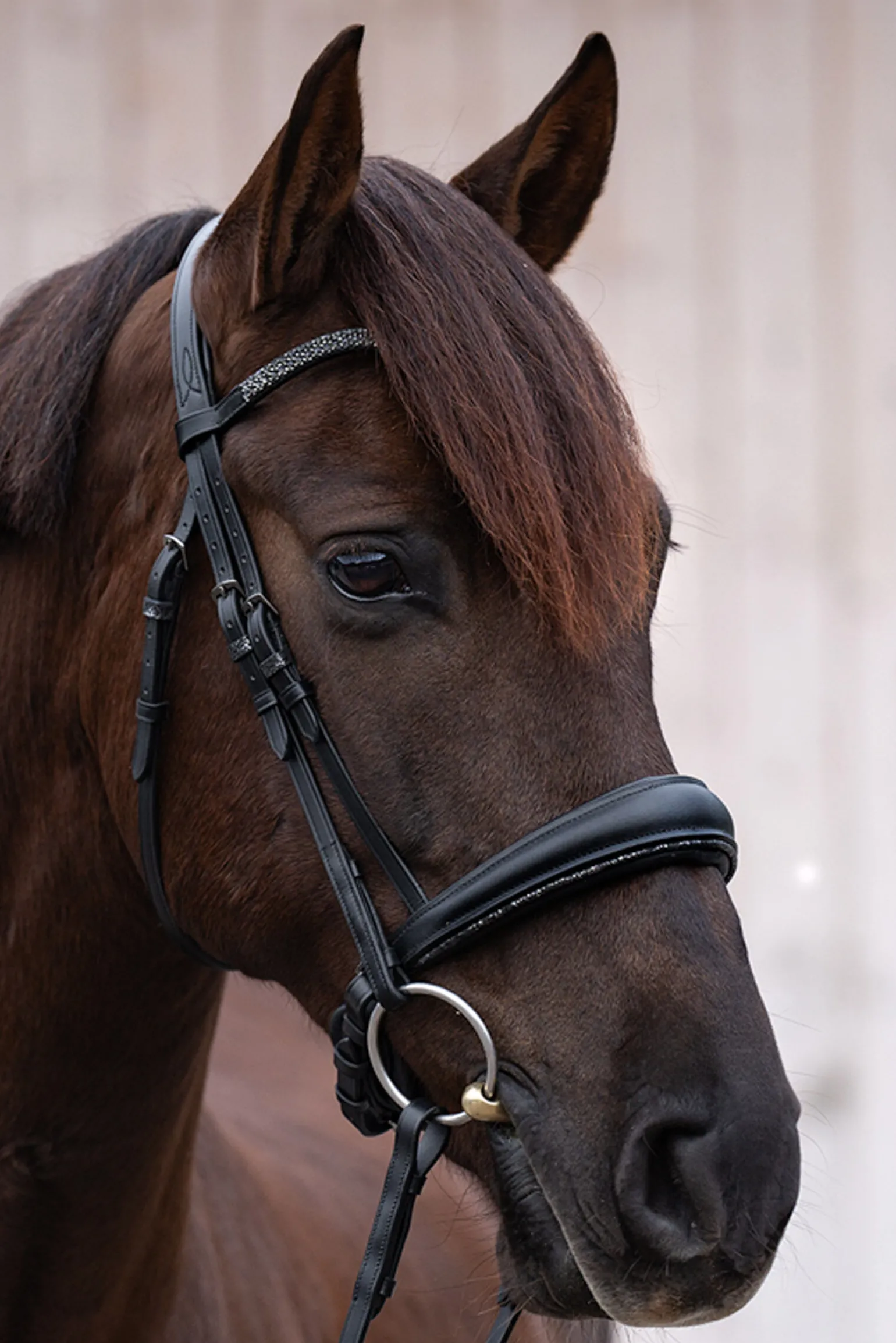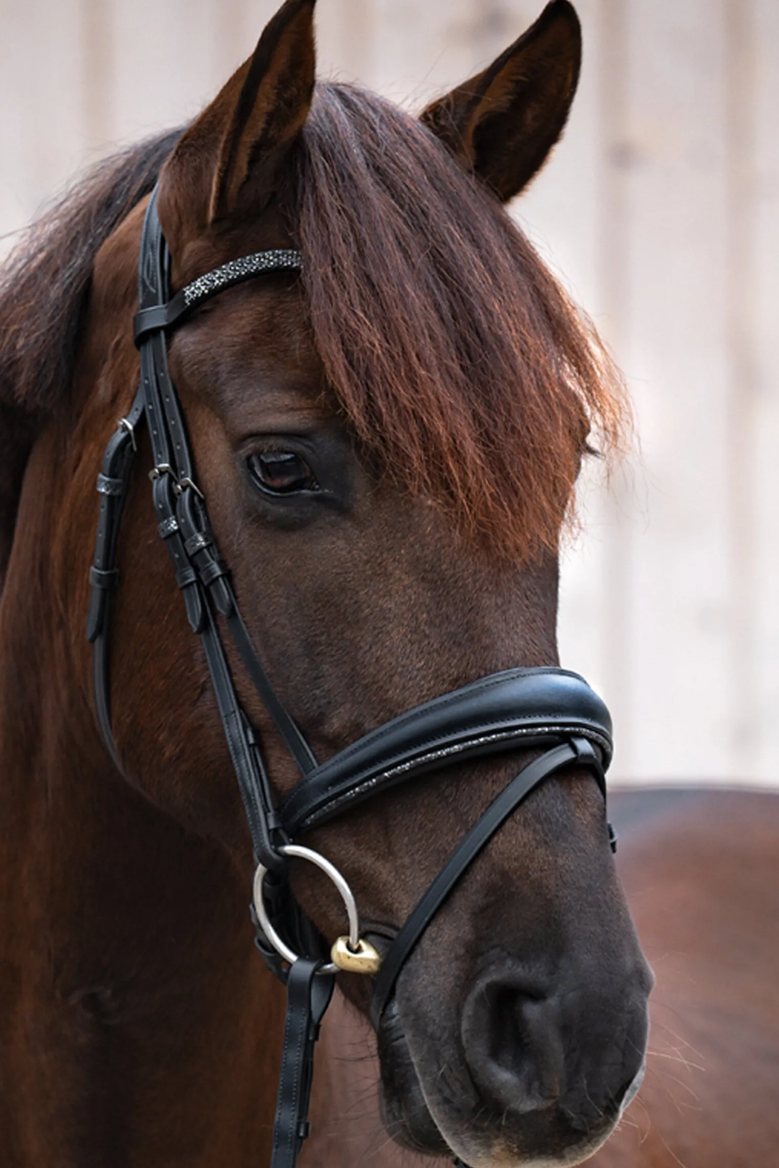 For trense med KavalSH4-tillegg er sperrriemen avtagbar. Det spesielle med dette er at festet for sperrriemen ikke er synlig, slik det er tilfelle med konvensjonelle trenser med avtagbar sperrriemen.Trensen leveres med gummierte tøyler og stenger (16 mm).