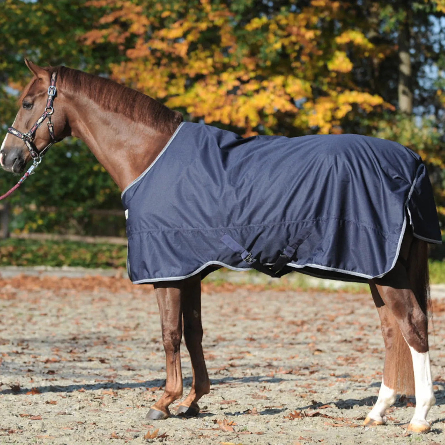 Dette nye utedekkenet gir hesten mye bevegelsesfrihet og komfort både høst og vinter.Det er laget av pustende, vanntett (3000 mm vannsøyle), og slitesterkt (600 denier ripstop) materiale.Uten ryggsøm.Dobbel borrelåslukking foran på brystet, elastiske innlegg på kryssgjordene, dyp halesnor og haleflapp.200 gram fyll.