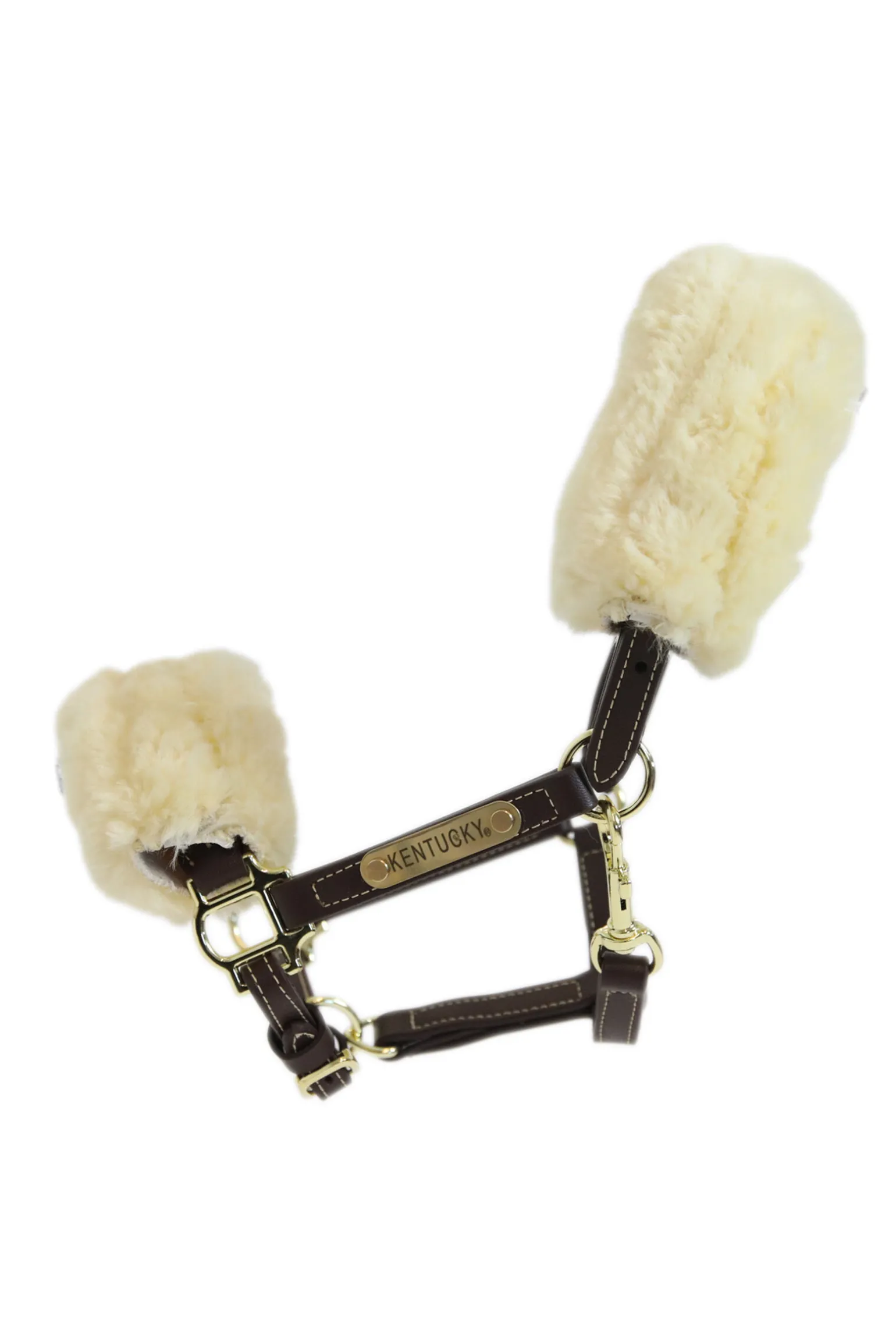 Kentucky Horsewear lærgrime med saueskinn vil gjøre alle ponnielskere lykkelige!Laget av holdbart og robust kunstig lær, med to saueskinnsdeler; en på nesen og en over nakken, som begge kan fjernes om ønskelig.Grimen er svært lett, myk og komfortabel.Den unngår trykk og gnag på ponniens hode.Karabinkroken for lukking på kinnet gjør grimen enkel å ta av og på.Ettersom den er laget av kunstig materiale (100% dyrevennlig) er denne grimen også svært enkel å rengjøre, da den kan vaskes i maskin på 30°. Ikke tørketrommel.