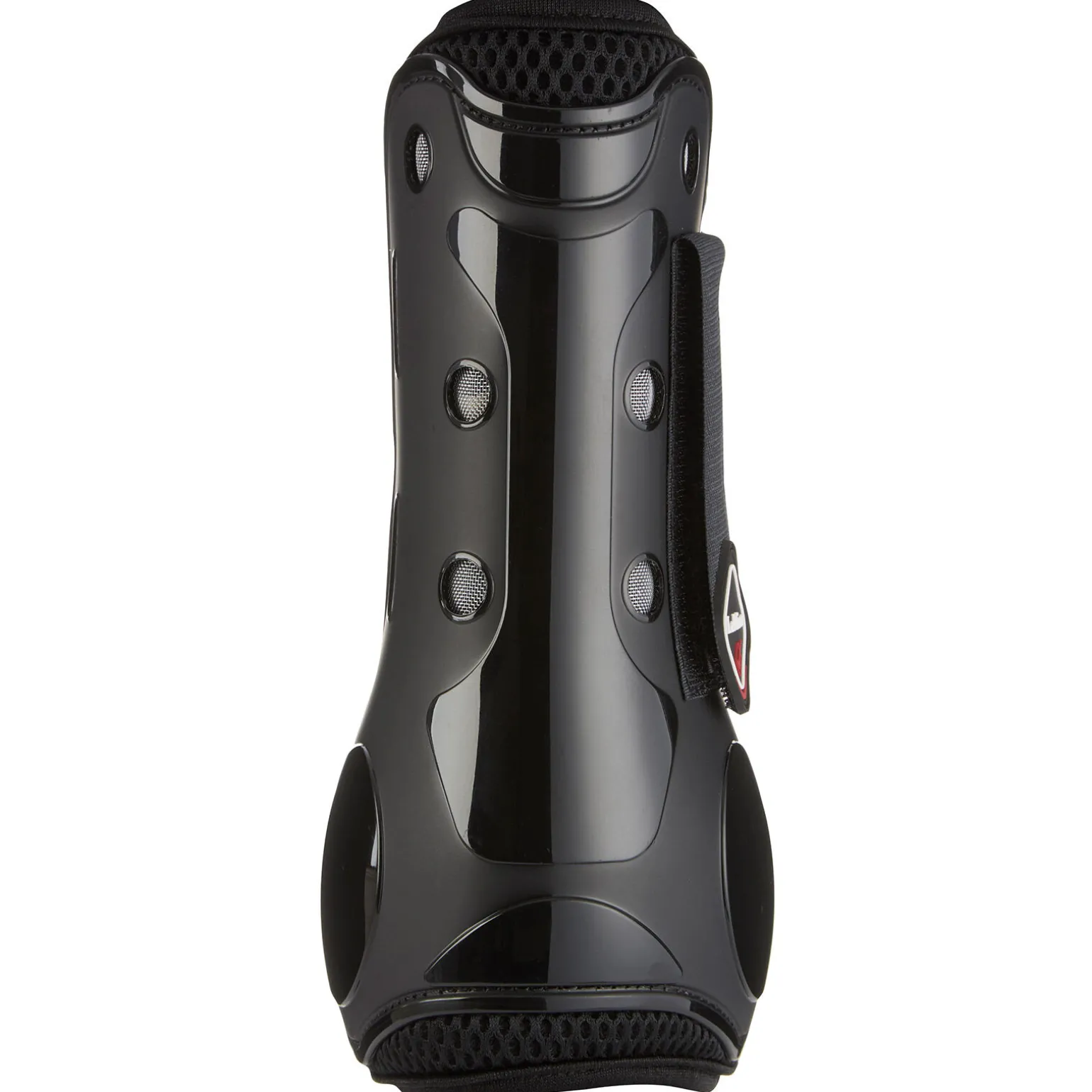 Smart PU leather over reach boots with unique WrapRound closure that is adjustable as well as easy & quick to remove. Includes new double lock feature for added security. Suitable for schooling, warm-up & travelling.