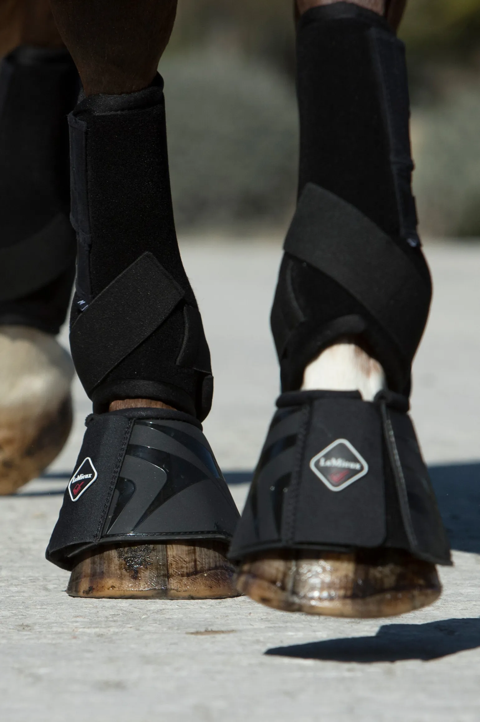Ergonomically formed to cover the heels and contour the hoof with no-turn knob to minimise movement. This tough boot is ideal for show jumping, X-Country & Hunting. This over-reach boot has a tough Ballistic Nylon outside material ideal to stop even the biggest studs. Soft neoprene lining minimises rubbing whilst strong double lock Velcro secures firmly in place.