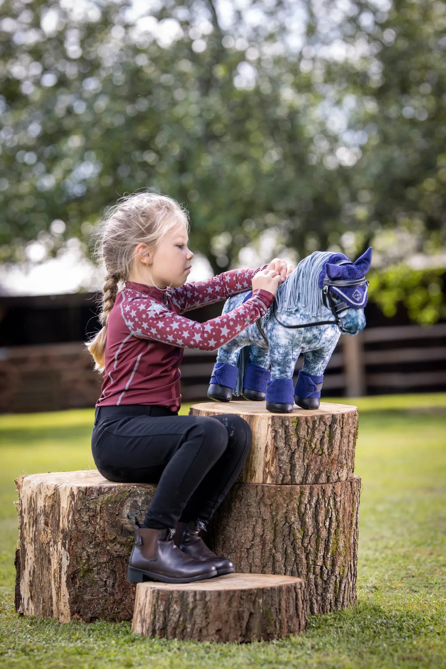 Sam er en fantastisk flott skimmel sprangponni med en grå man og hale som kan flettes. Pelsen er supermyk, perfekt for børsting og stell. Han står trygt på alle fire bein og er fleksibel, noe som gjør ham trygg for små barn (fra 3 år og oppover) å leke med. Sam kommer i sin egen flotte hestekasse som kan snus og bli til en luksuriøs stall! Selvfølgelig er det tilgjengelig matchende tilbehør til Sam i dine favorittfarger, inkludert sjabraker, fluemasker og bandasje, samt fullt funksjonelle saler og hodelag i ekte lær, noe som gjør disse lekene ikke bare morsomme, men også lærerike! Hver ponni er individuelt håndlaget, noe som gir små variasjoner i størrelse og form, og leveres med eget pass og instruksjonshefte for stell. Tilbehør er ikke inkludert og selges separat.