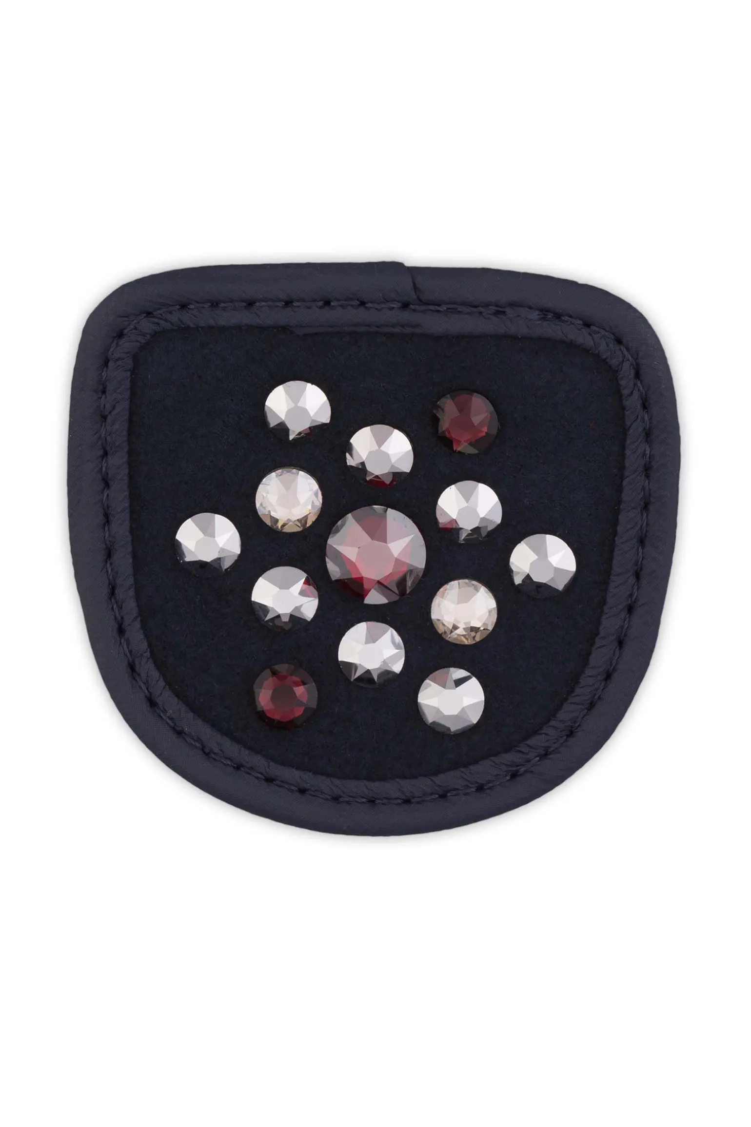 Burgundy Bell – metallisk rød kombinert med sølvfargede og fargeløse krystaller, et virkelig blikkfang.Dekorasjonen passer alle MagicTack hansker og kommer i par uten hansker.