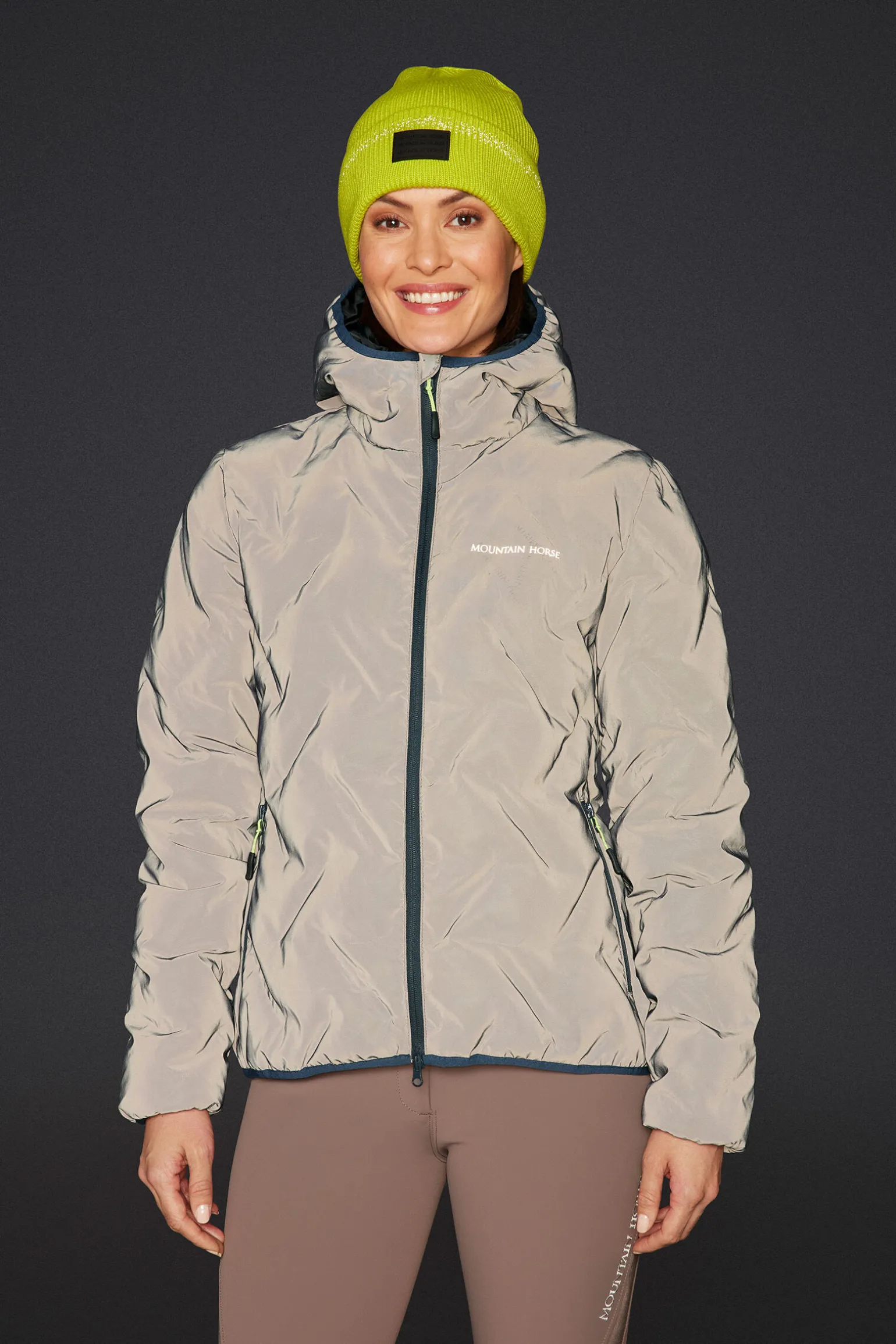 Jakke med reflekterende hovedstoff, høy loft lettvektspolstring. Morsomt sveiset quiltemønster, hette og frontlommer med glidelås. Ventilasjon under armene. Koselig allround jakke polstret med en lett, høylofts polyester.