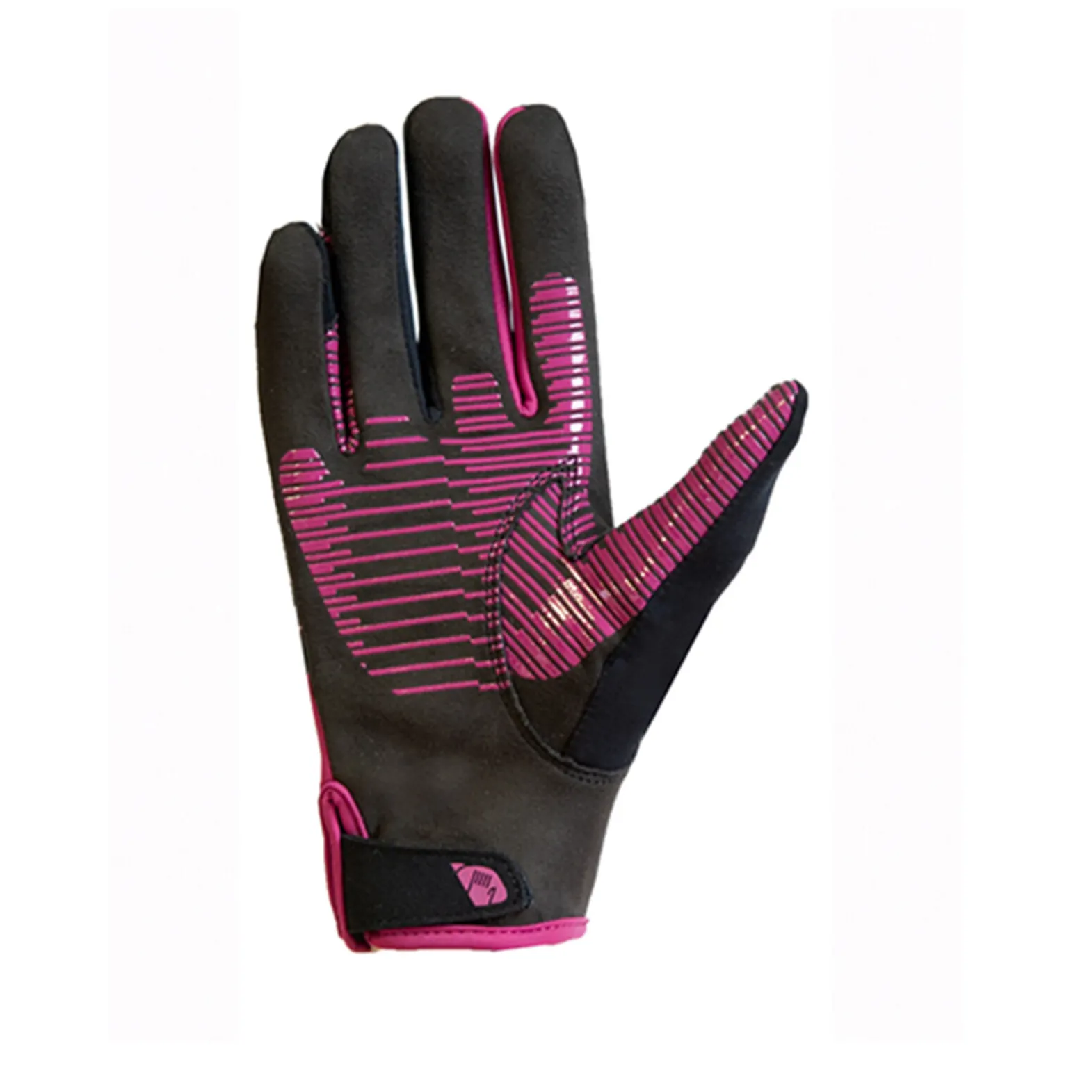 The JUNE is a real eyecatcher – a sporty, elegant and highly comfortable riding glove for fashion-conscious female equestrians. The JUNE is available in the color combinations black/grey and black/berry as well as navy blue; it is highlighted by a feminine, discreet and sparkling ROECKL lettering. Apart from its appealing look, the JUNE has also got lots of features to offer: Supple, elastic Lycra on the backhand provides high wear comfort and playful mobility for your fingers. Lycra absorbs sweat, dries quickly and is also napped and fluffy on the inside – for pleasant wear comfort, added warmth and first-class climate management. The palm consists of DURASENSE, a thin, tactile and a robust synthetic suede material that is laminated with a warming lining; thanks to non-slip ALL-WEATHER-GRIP siliconization, you will have optimum grip in both wet and dry weather conditions. In addition, the JUNE boasts a particularly comfortable and exact fit which is adapted specifically to the anatomy of the female hand, as well as ROECKL窶冱 exclusive COMFORT-CUT: An easy closure fastener reliably secures the glove around your wrist. Convenient: The glove is machine-washable at 30° Celsius.