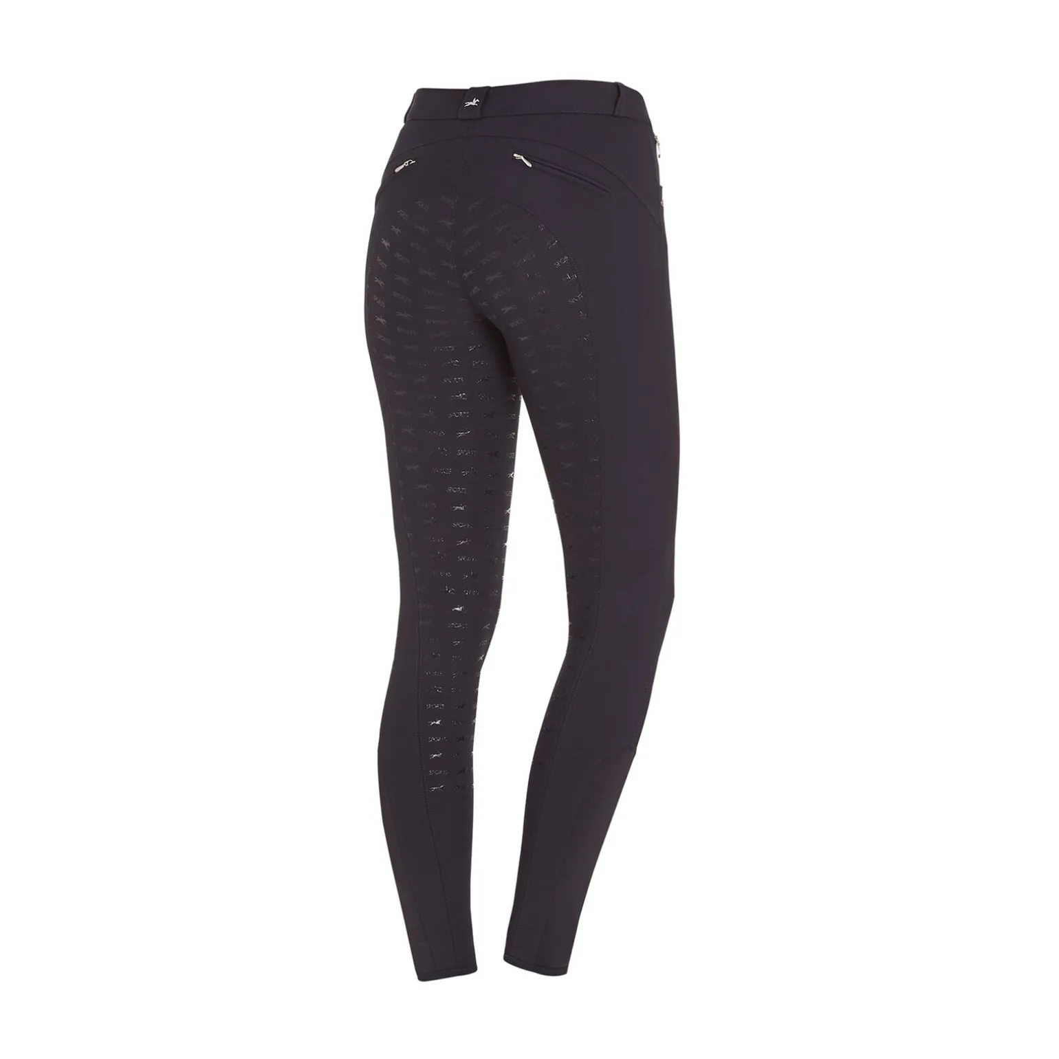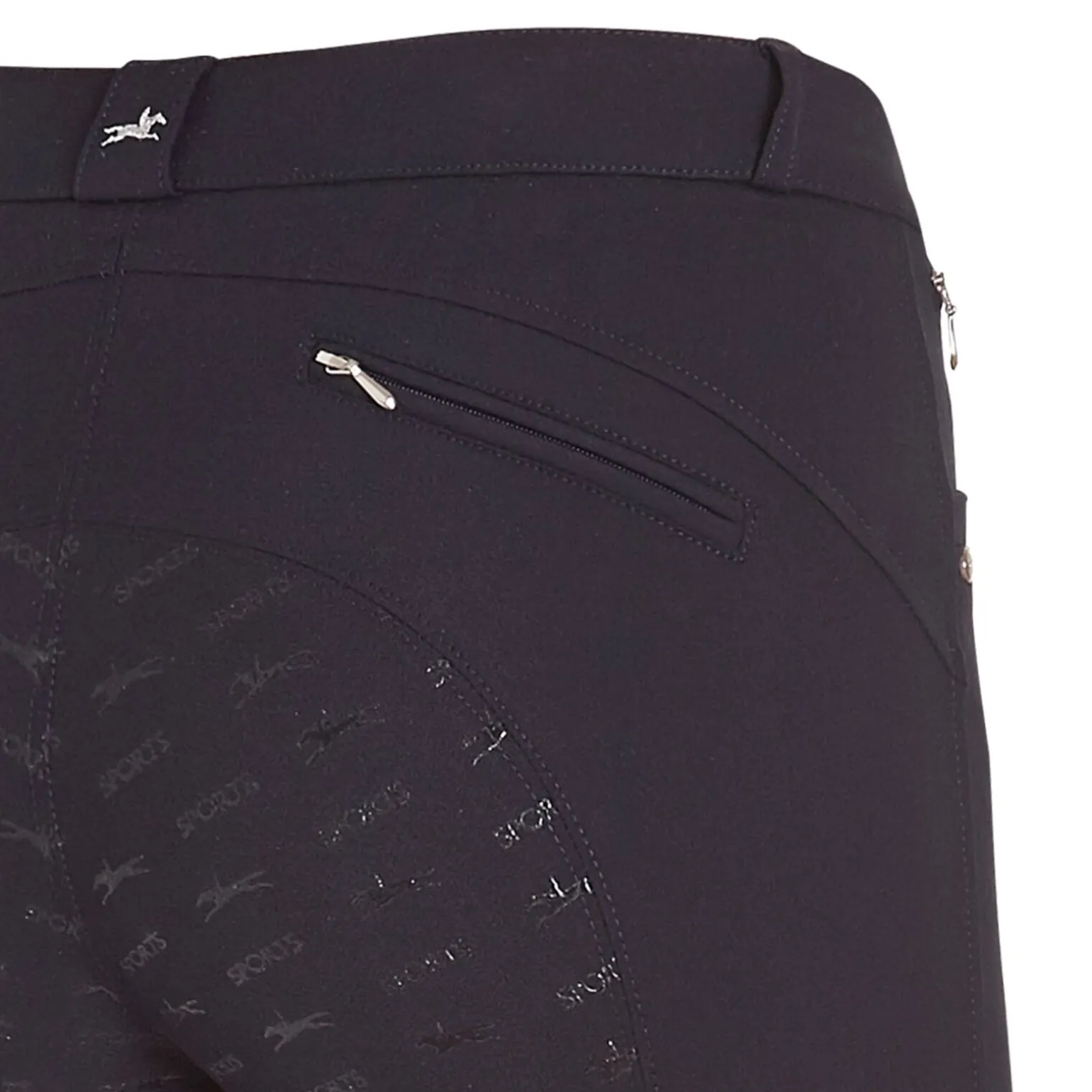 Cindy ridebukser kommer med robust helforsterket sete i silikon med antiskli, noe som sikrer perfekt grip i salen.Den svært elastiske blandingen av elastisk bomull garanterer komfort og perfekt passform.Ingen irriterende sømmer i kneområdet forhindrer trykk og punkter med gnag.Det samme gjelder det elastiske området rundt anklene.Det visuelle høydepunktet er de to uekte glidelåslommene bak.