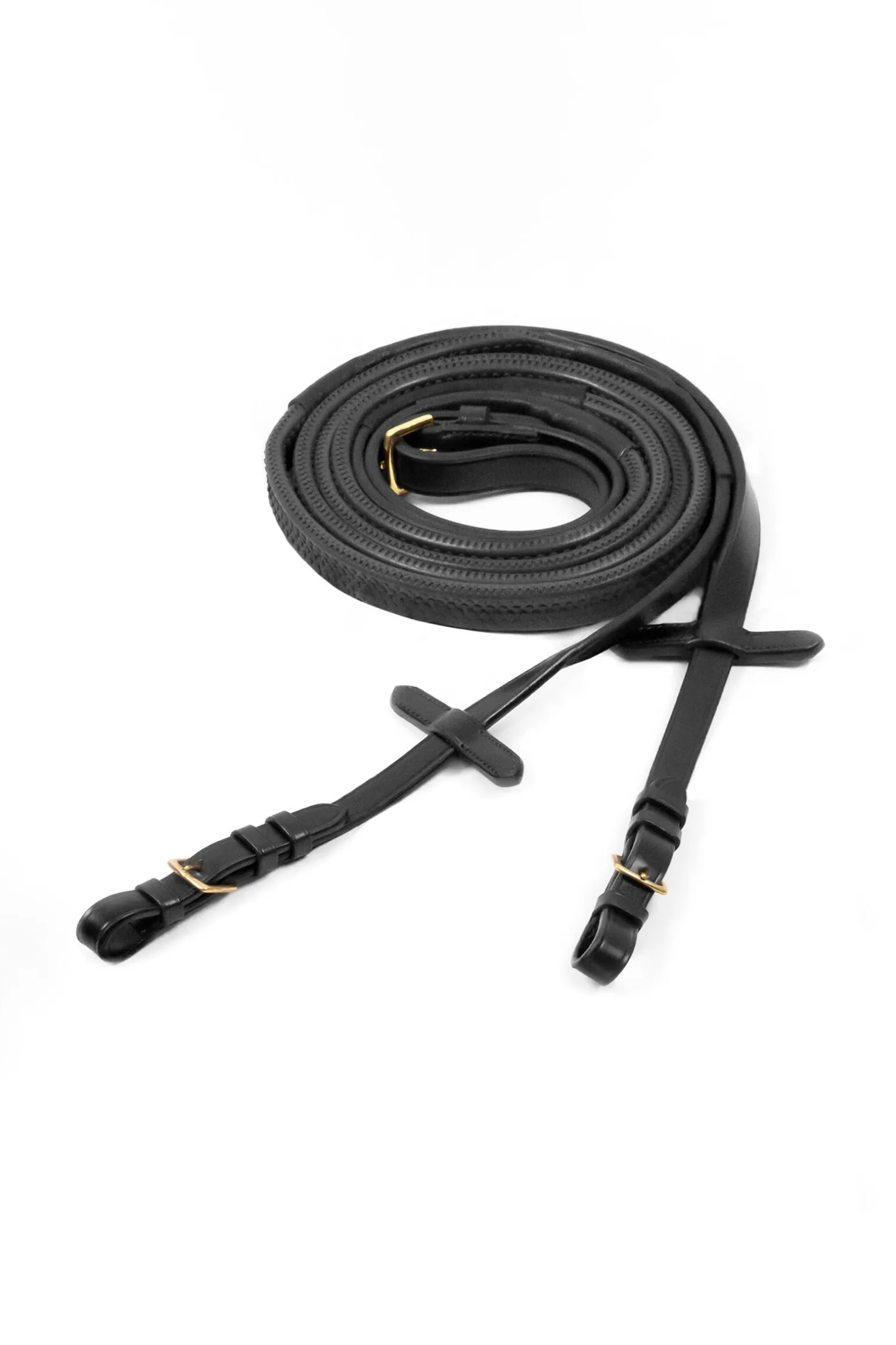 Enkle gummitøyler med spenne og middels bredde på 17 mm. Tøylene ligger komfortabelt i hånden og leveres med martingalstoppere.