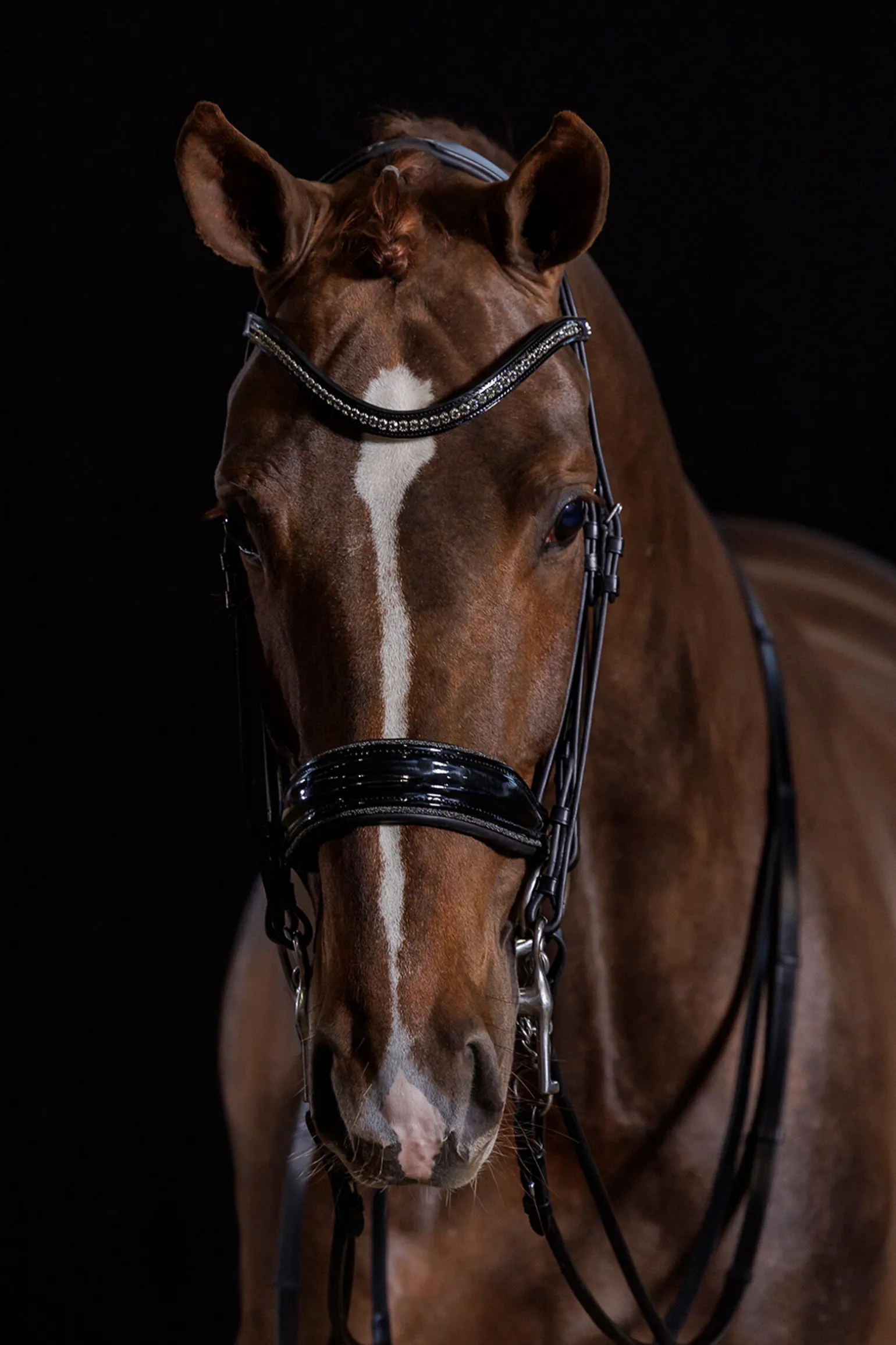 - pannebånd i patentskinn med store krystaller