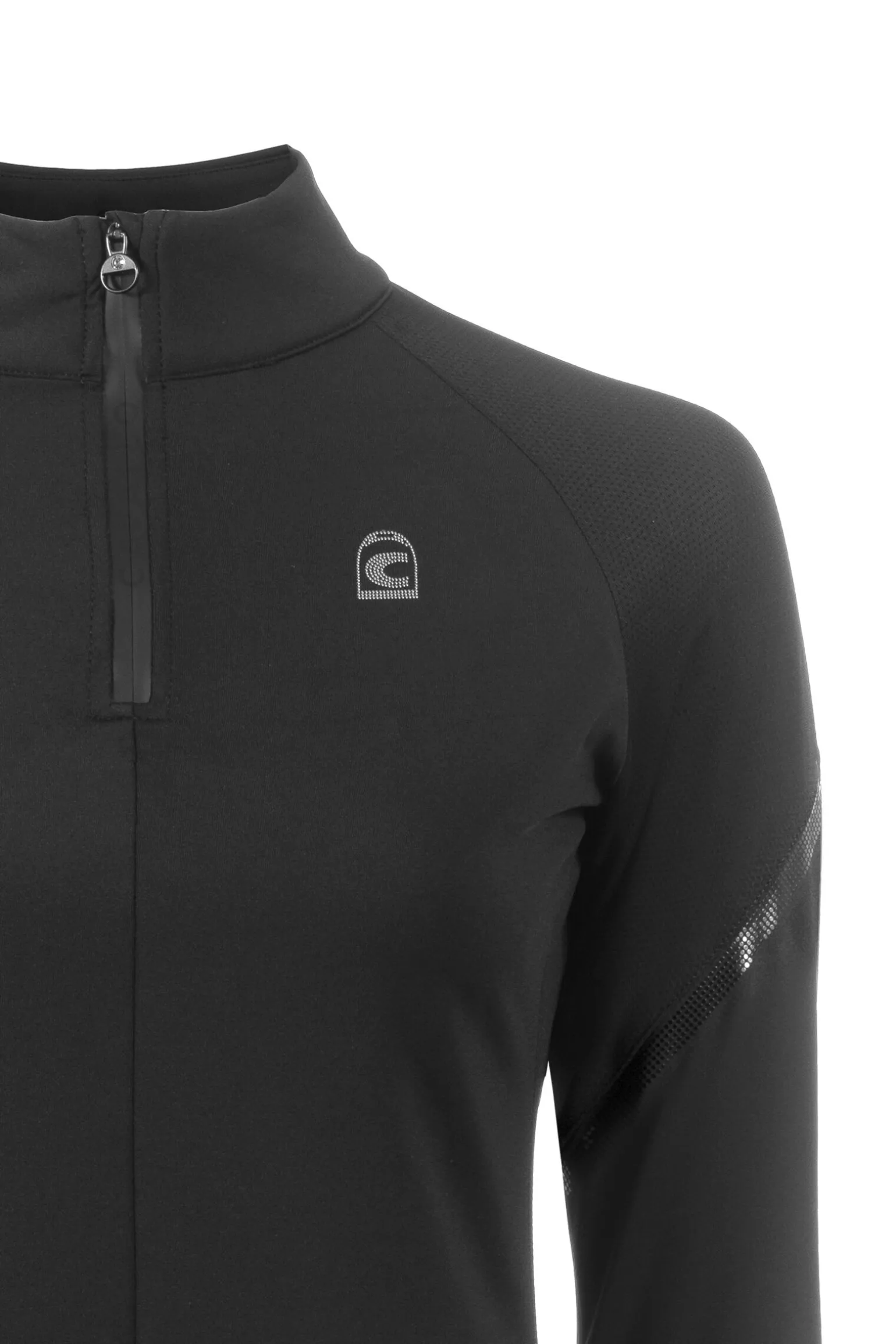 - Svart, kort glidelås med Cavallo-print på forsiden av kragen