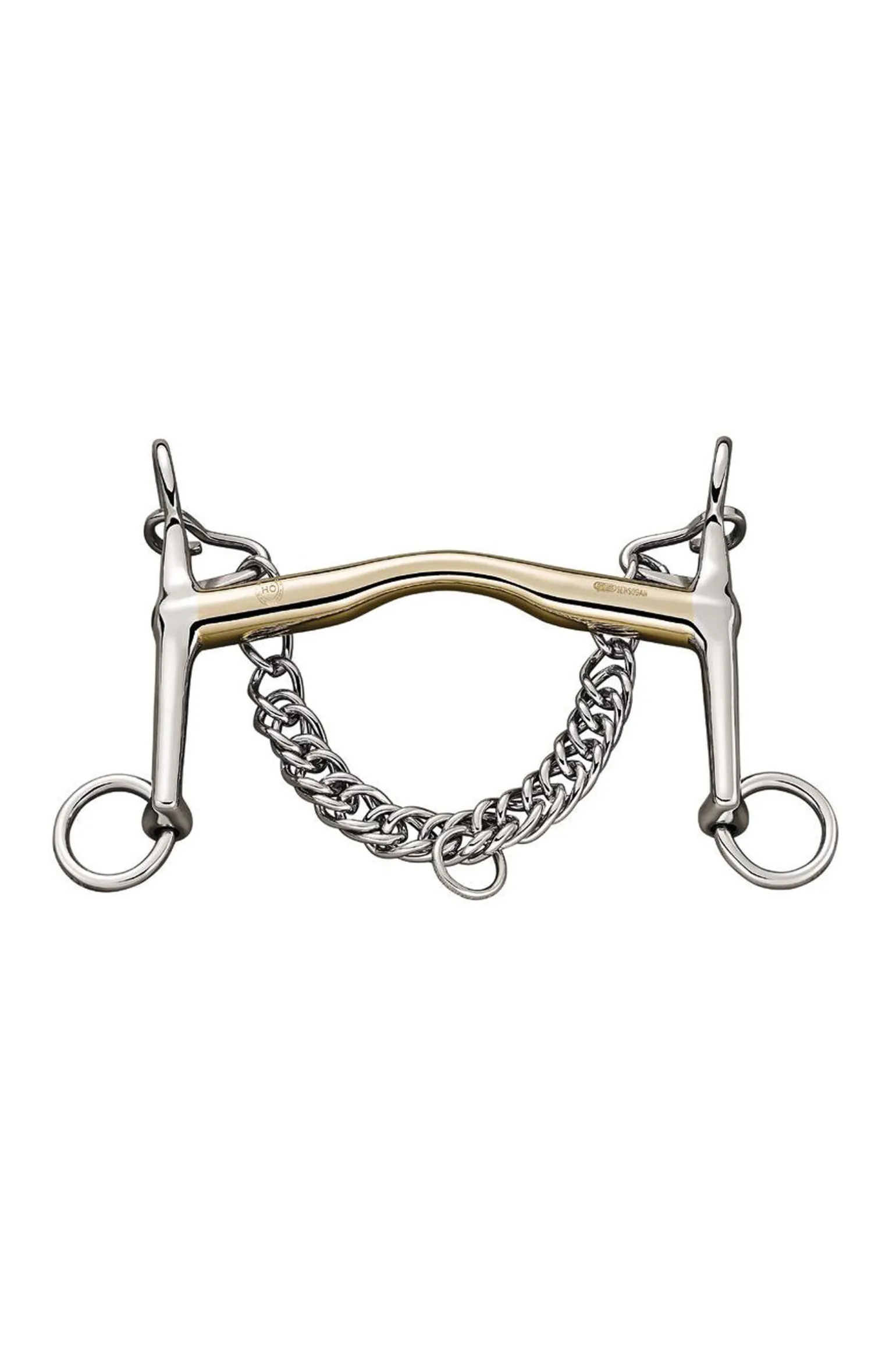 Denne unike kandaren med et skrått munnstykke og en glatt, avrundet port som er vinklet framover og fordeler trykket jevnt på tungen. Bittet gjør bruk av tungens eksepsjonelle følsomhet, og sørger for presis styring med tøylene. Passer til hester som ikke liker trykk på tungen.Perfekt når du vil introdusere kandaren forsiktig for hesten. Den skrå munndelen oppfordrer til harmoni mellom rytterens hånd og hestens munn, og gir en avslappet og god kontakt til kandaren.Man trenger mindre press fra tøylene ettersom det blir mer direkte på grunn av de korte stengene. Sensitive hender er derfor svært viktig.